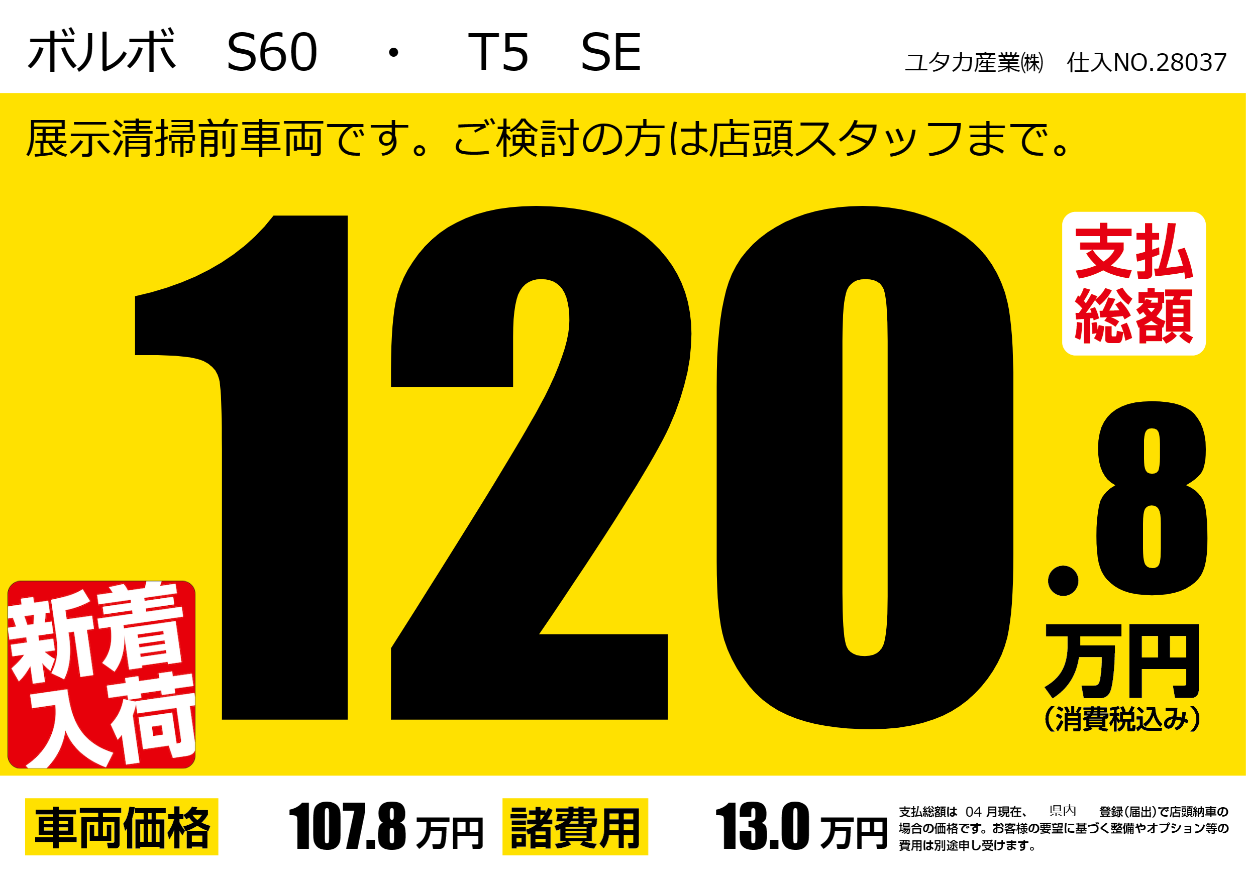 | 車名 | ボルボ S60 ・ T5 SE | グレード ミッション 排気量 |