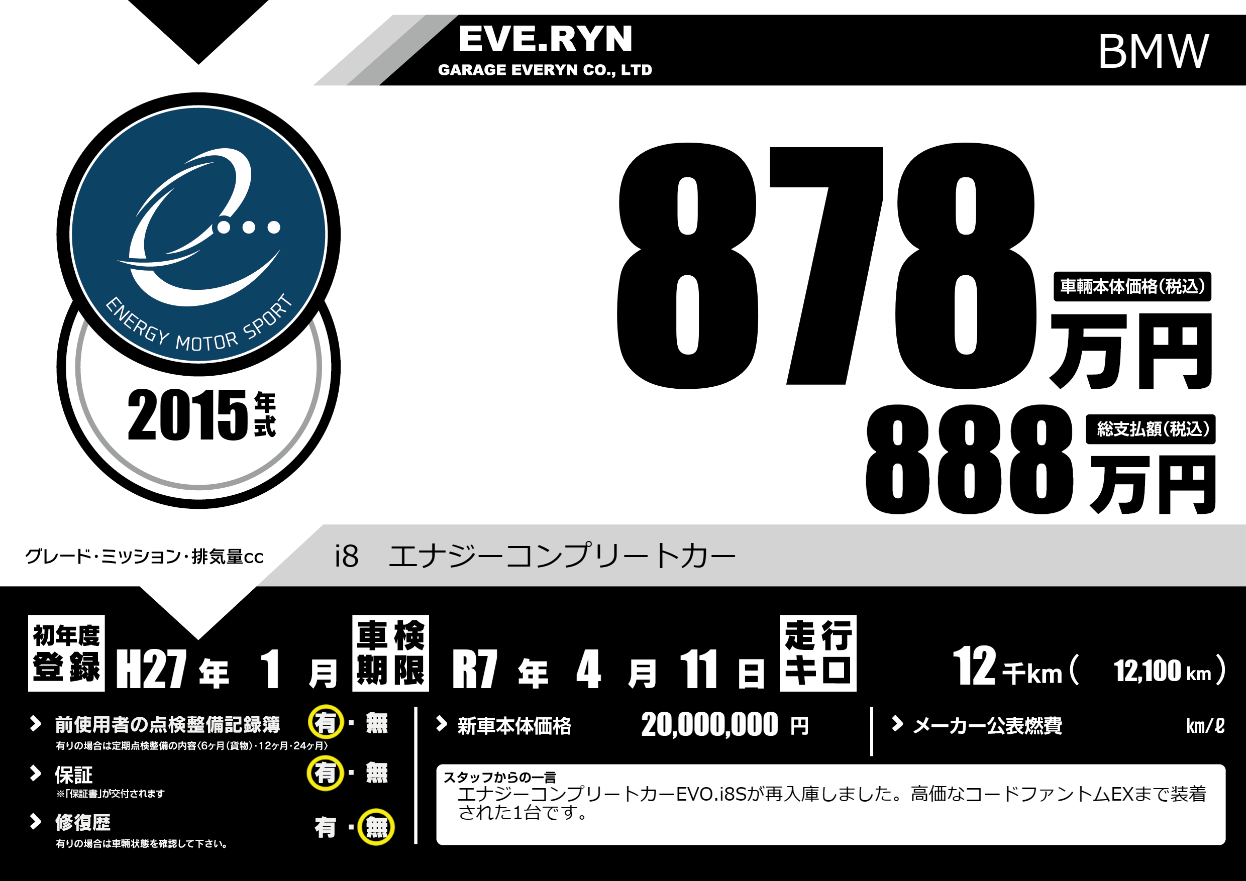 | 走行キロ | 1.2万km | 初年度登録 | H27年1月 |