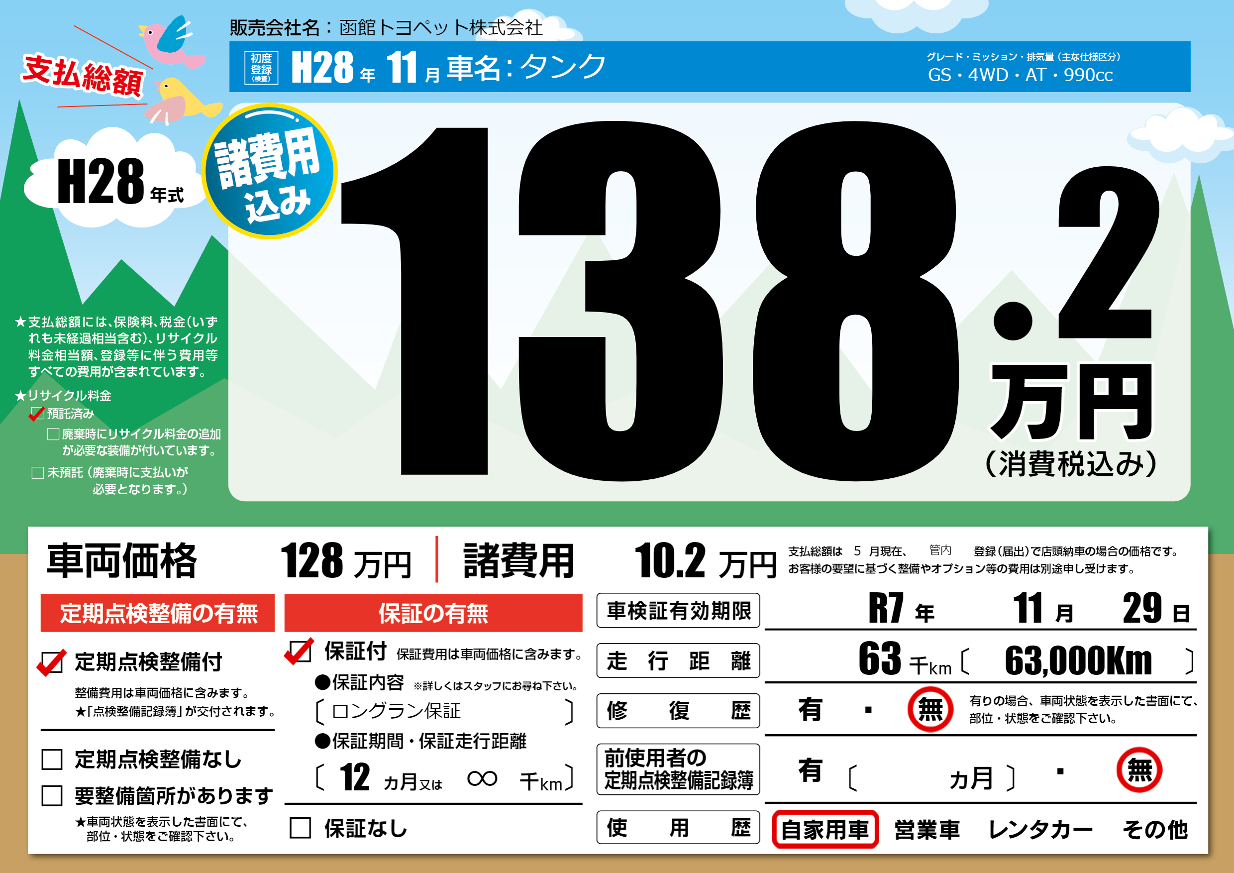 | 車検制限 | R7年 11月 29日 | ||