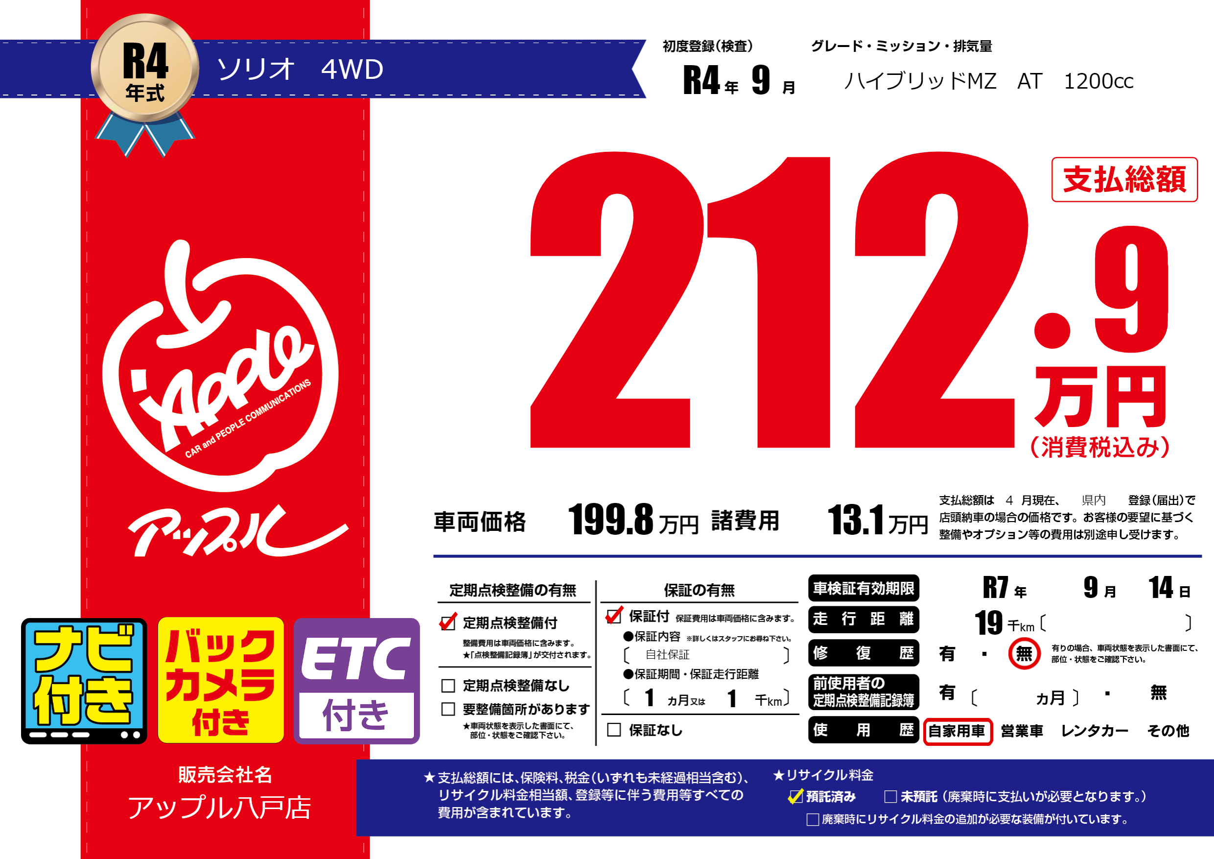 | 車検制限 | R7年 9月 14日 | ||
