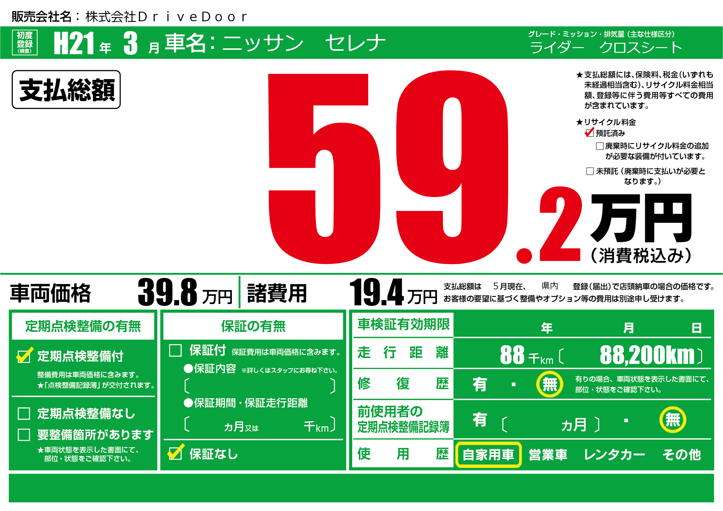 定期点検整備 | 定期点検整備あり |