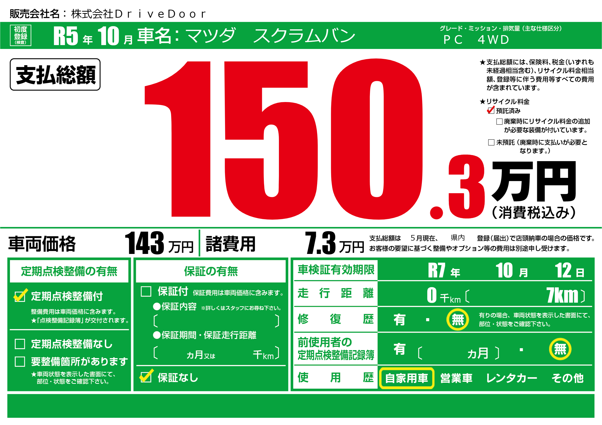 なし | 車検制限 | R7年10月12月 |