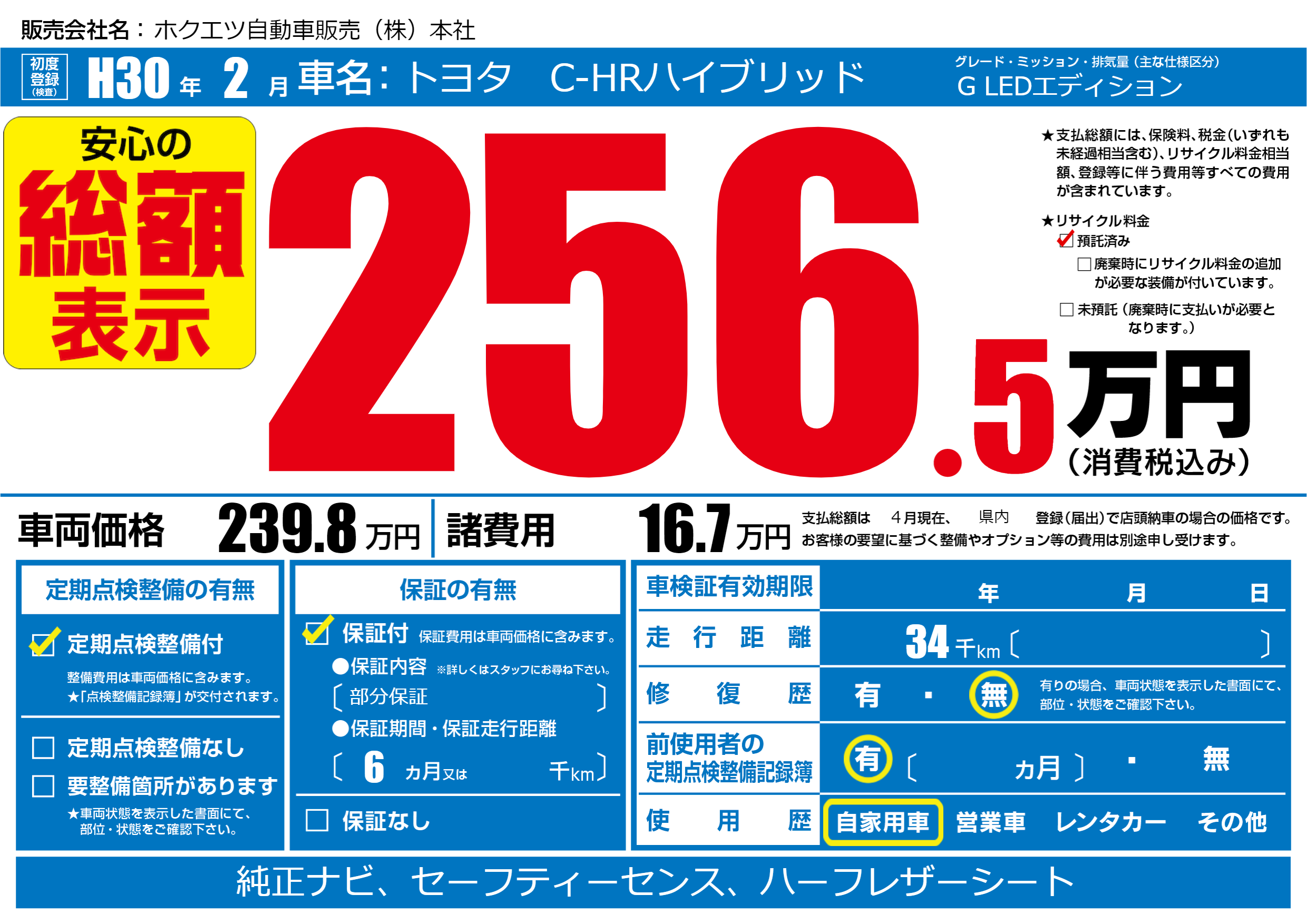 | 初年度登録 | H30年2月 | ||
