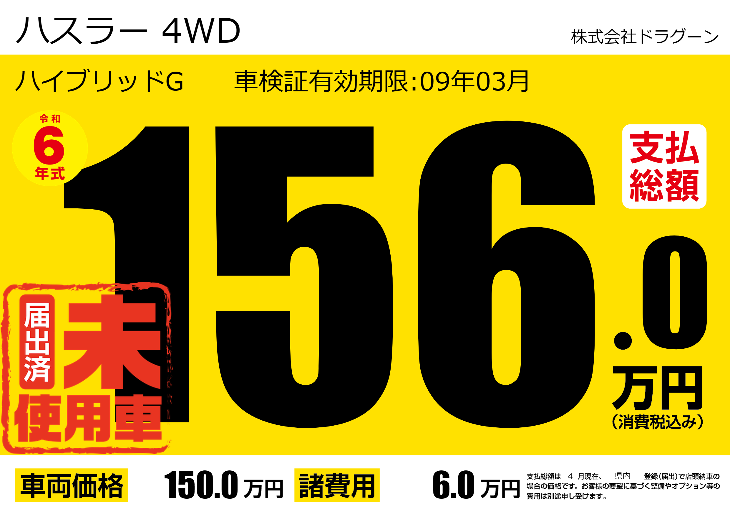 | 車名 | ハスラー 4WD | グレード ミッション 排気量 |