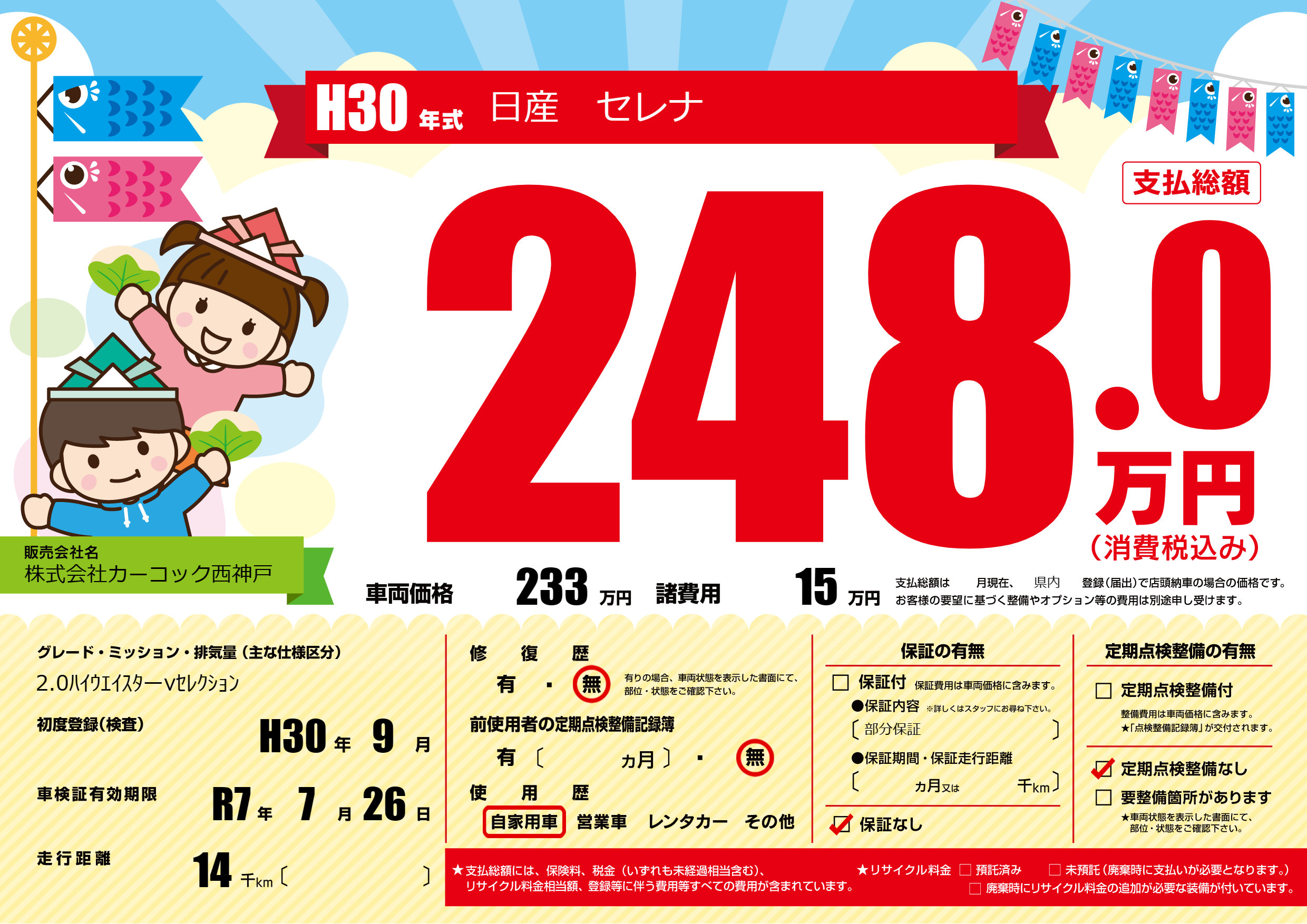 | 車名 | 日産 セレナ | グレード ミッション 排気量 |