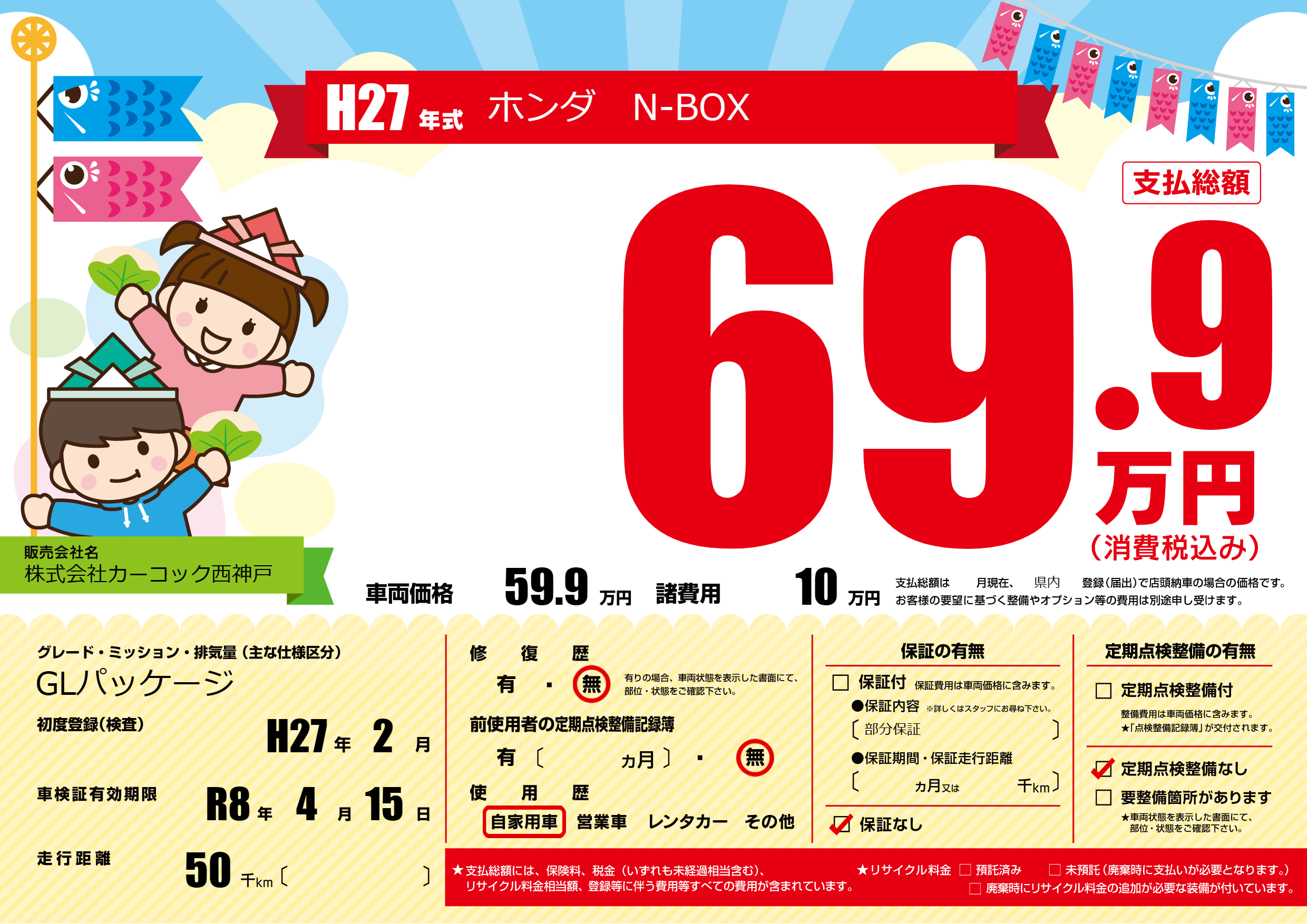 | 走行キロ | 5万km | 初年度登録 | H27年2月 |