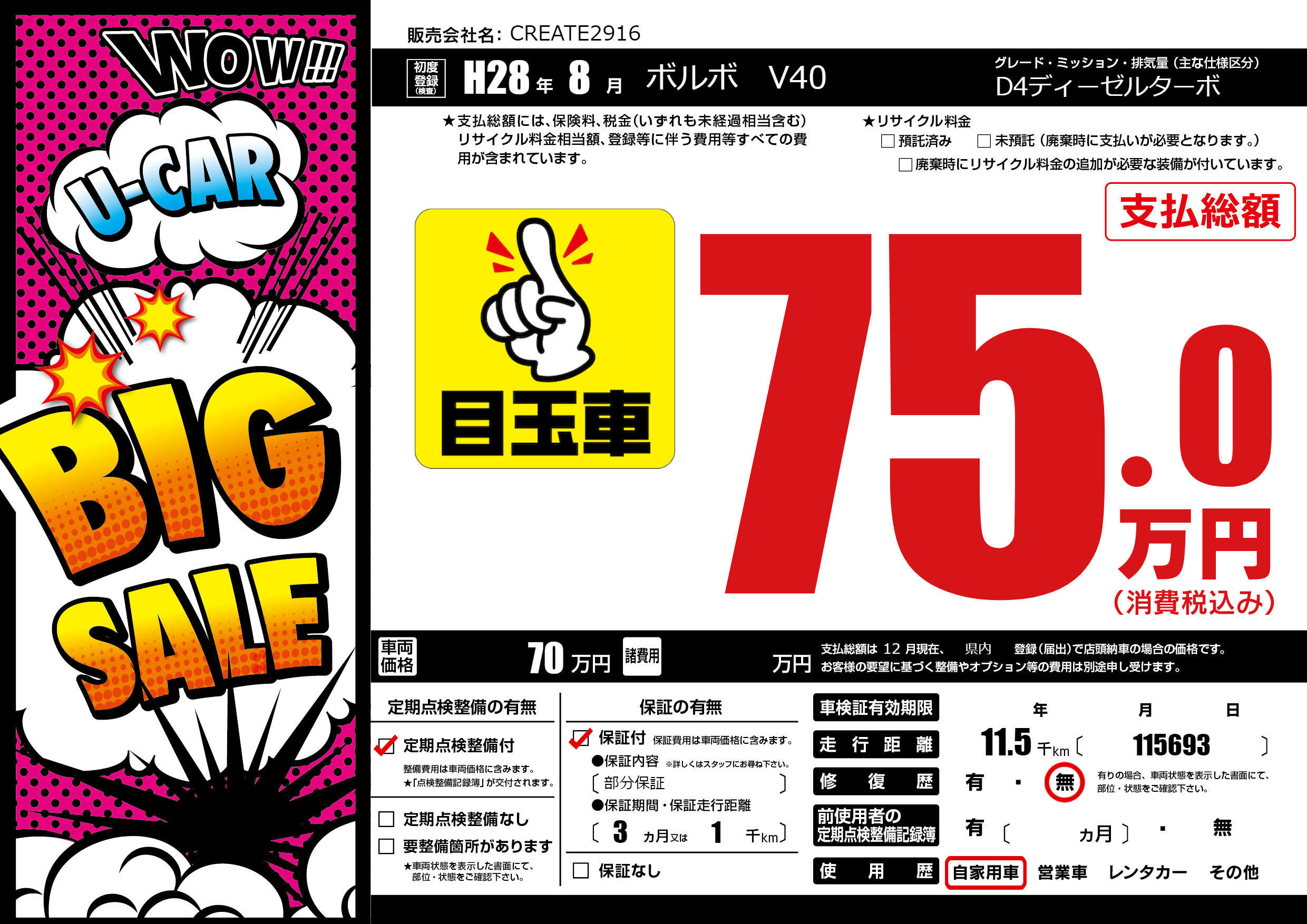 | 定期点検整備 | 定期点検整備あり | ||