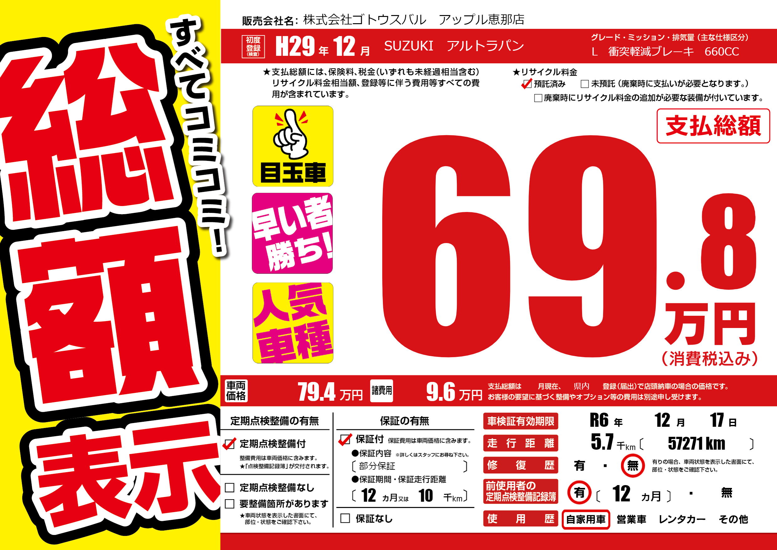 | 車検制限 | R6年 12月 17日 | ||