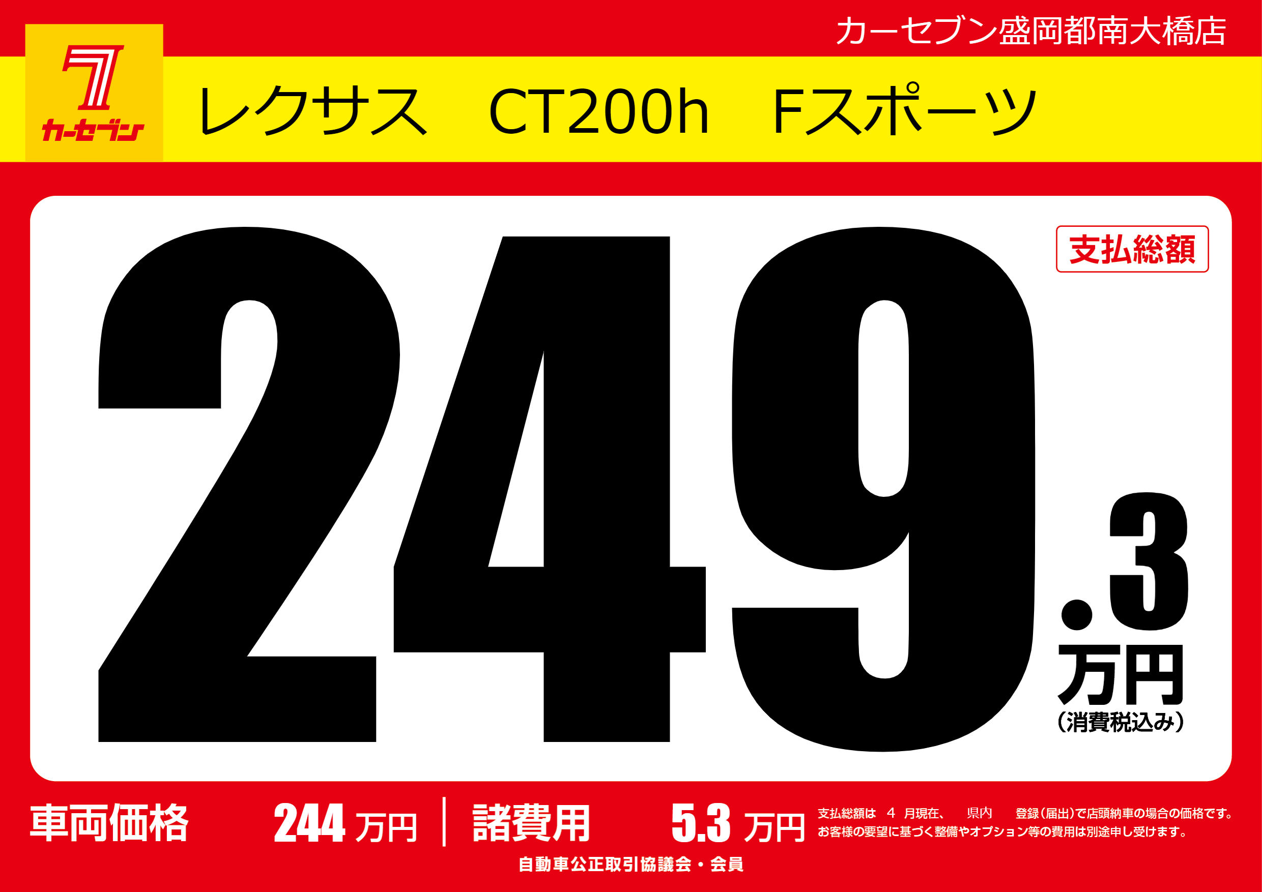 | 車名 | レクサス CT200h Fスポーツ | グレード ミッション 排気量 |