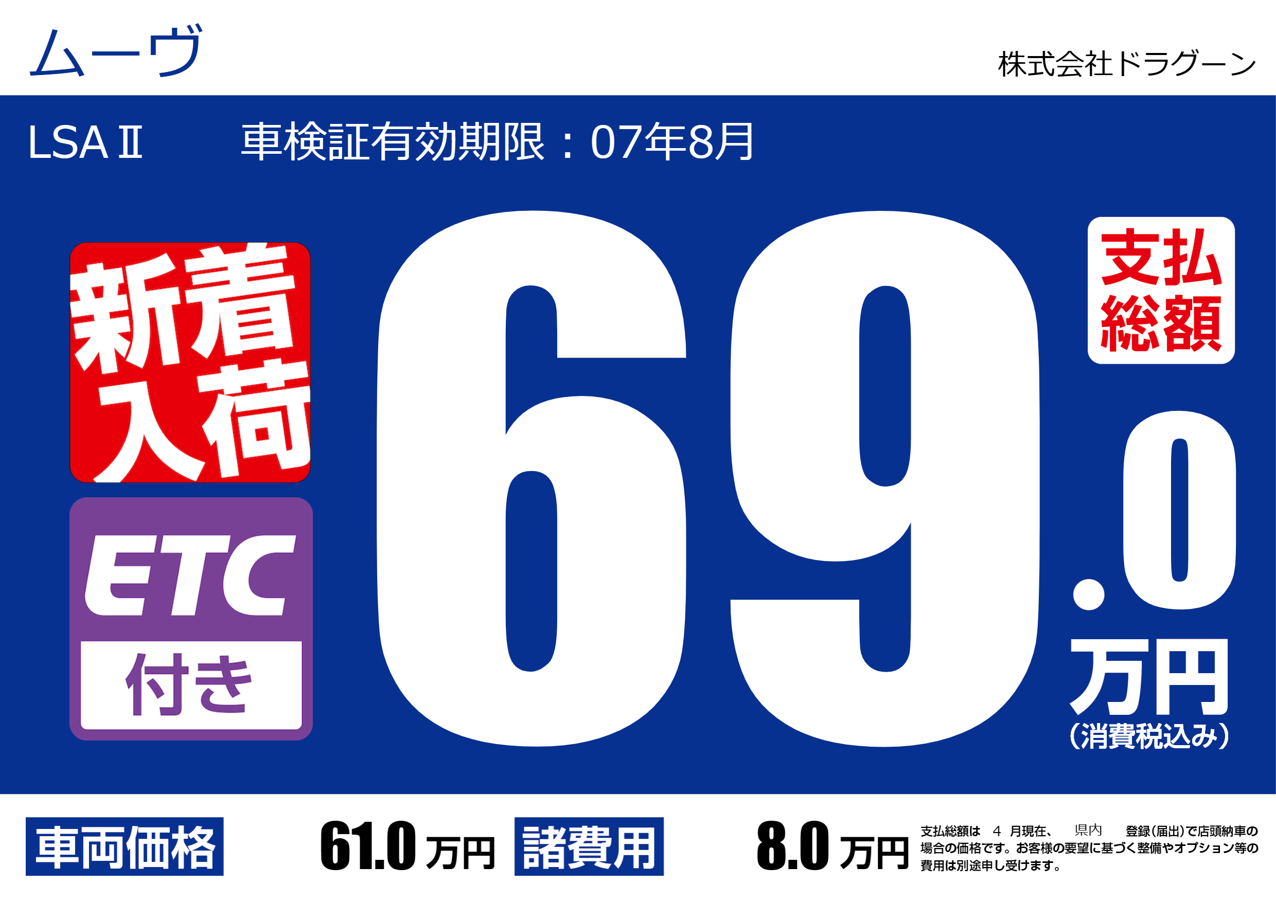 | 車名 | ムーヴ | グレード ミッション 排気量 |