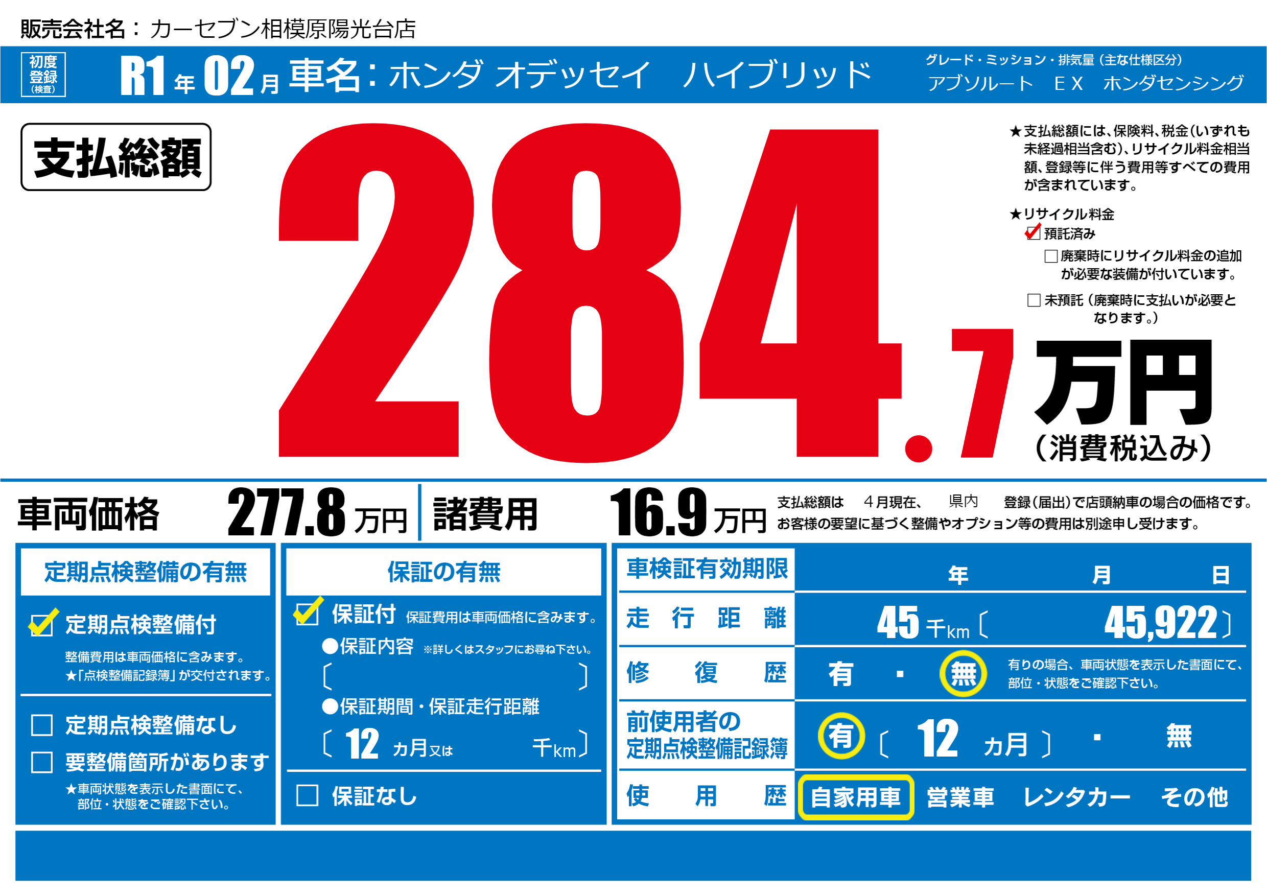 | 定期点検整備 | 定期点検整備あり | ||