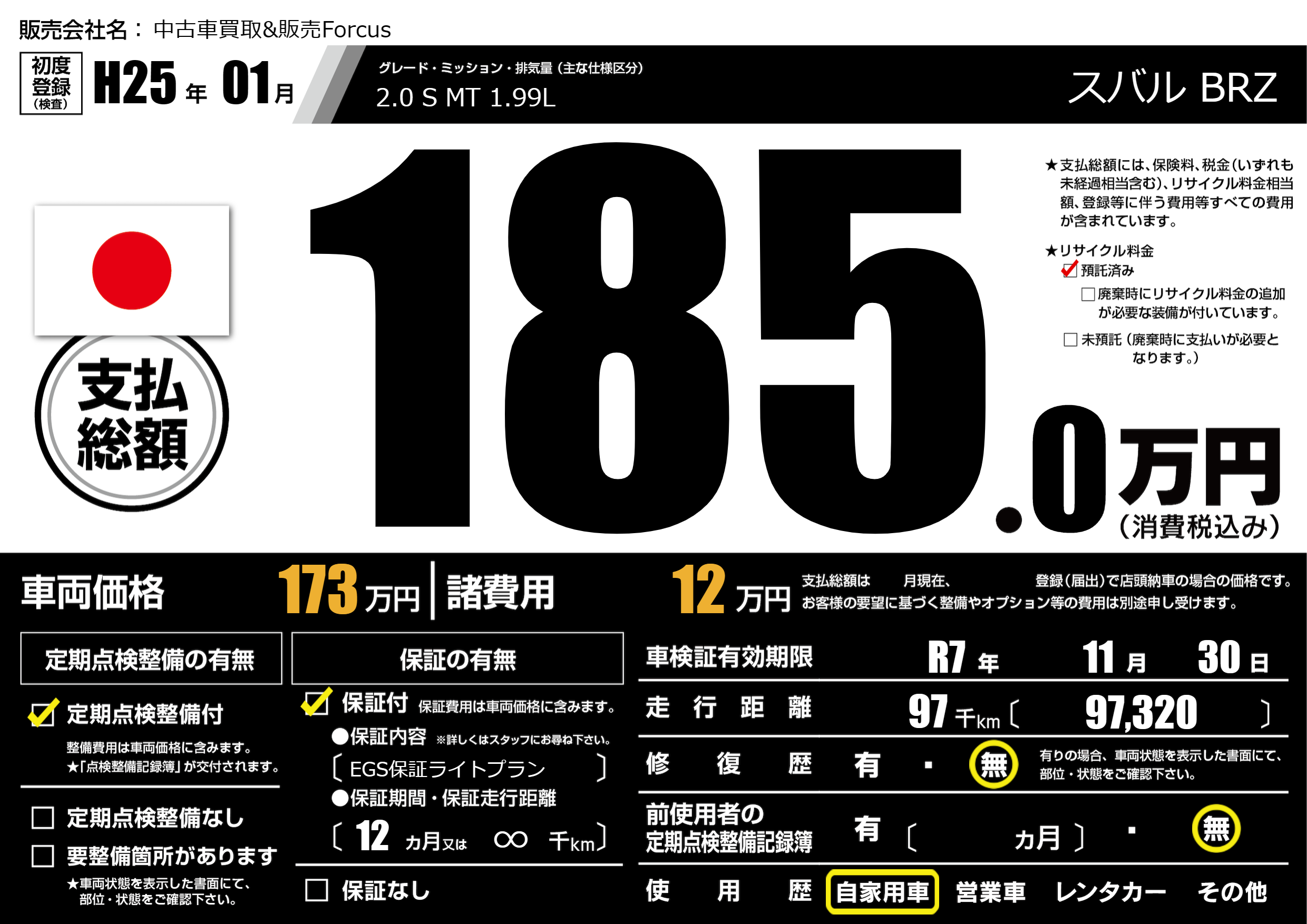なし | 車検制限 | R7年11月30月 |