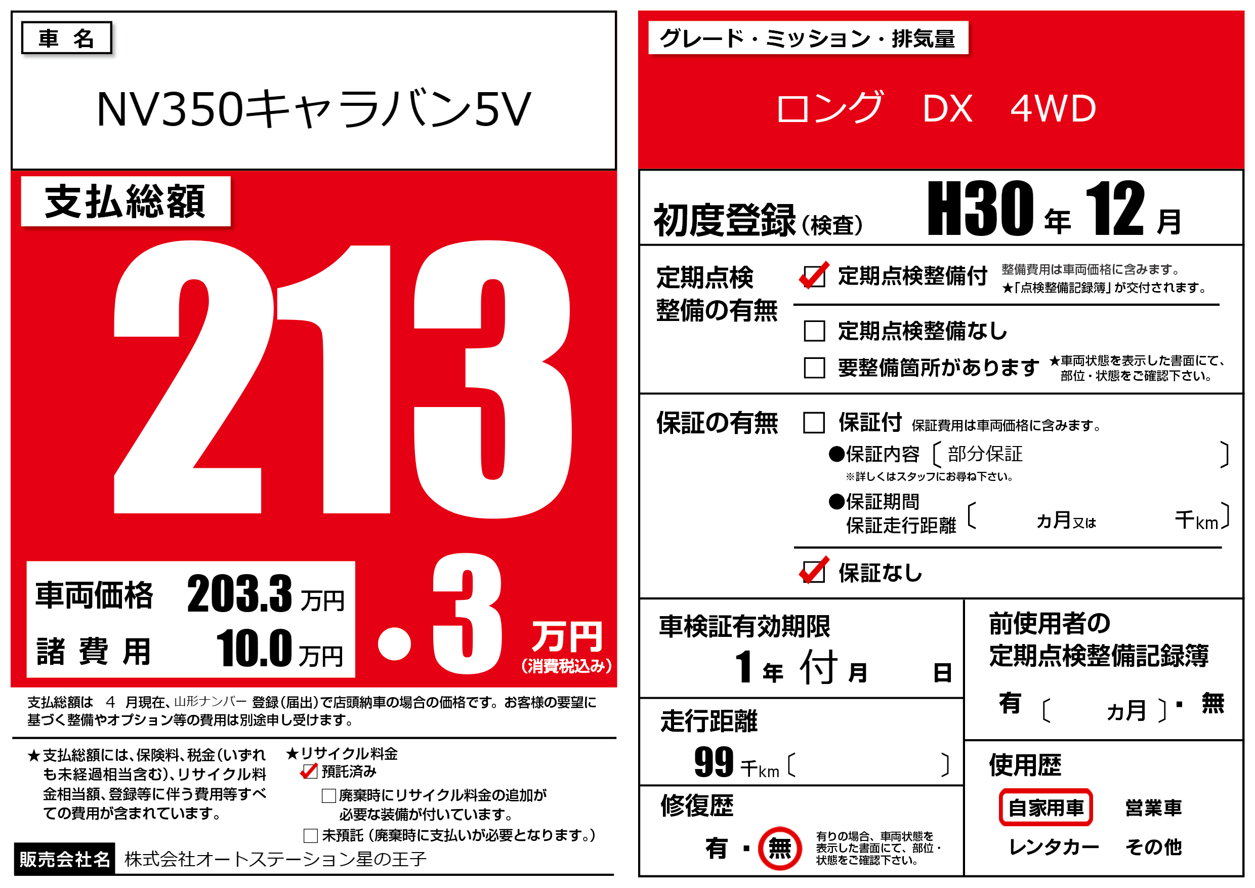 なし | 車検制限 | 1年付月---月 |