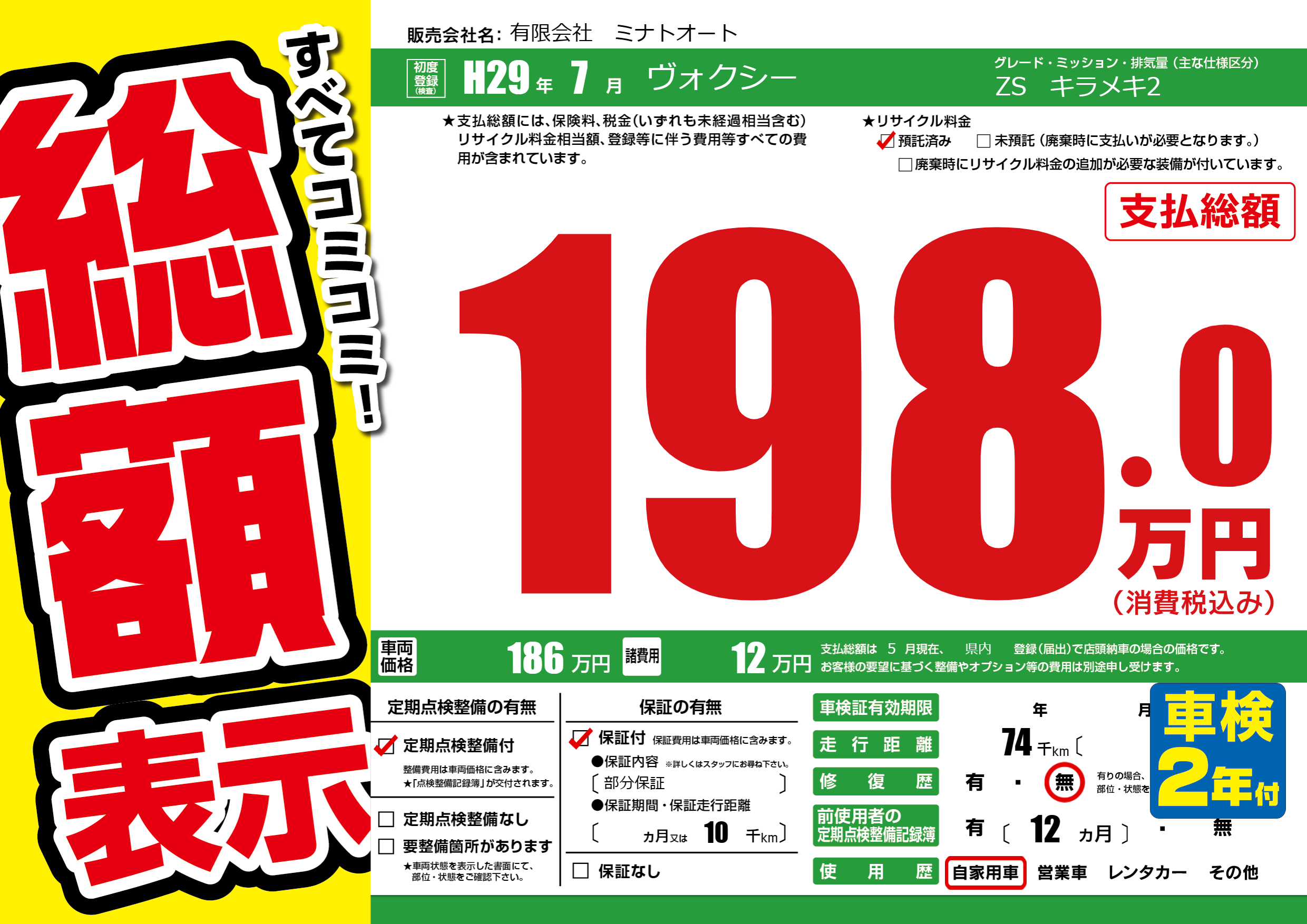 | 車名 | ヴォクシー | グレード ミッション 排気量 |