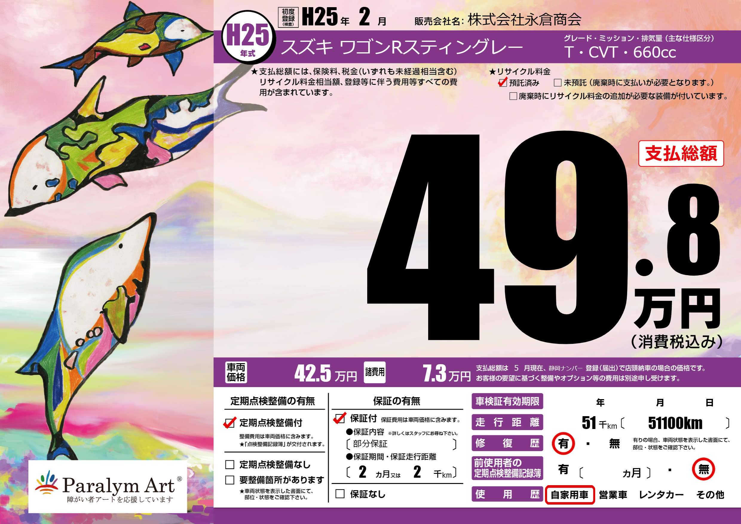 | 走行キロ | 5.1万km | 初年度登録 | H25年2月 |