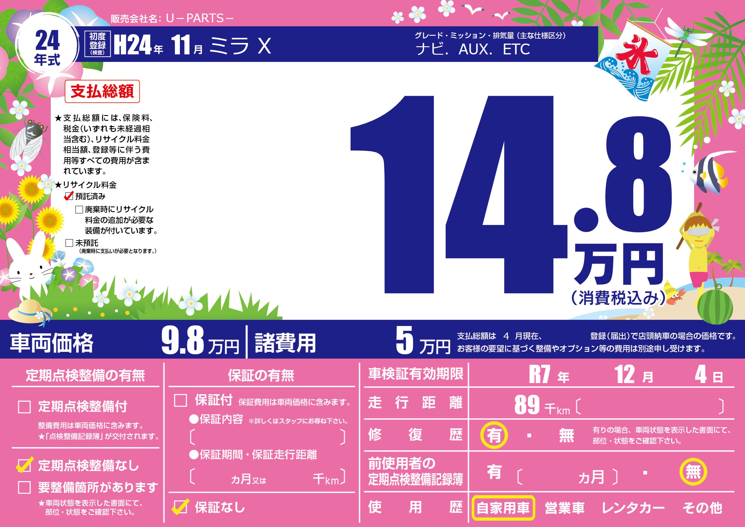 なし | 車検制限 | R7年12月4月 |