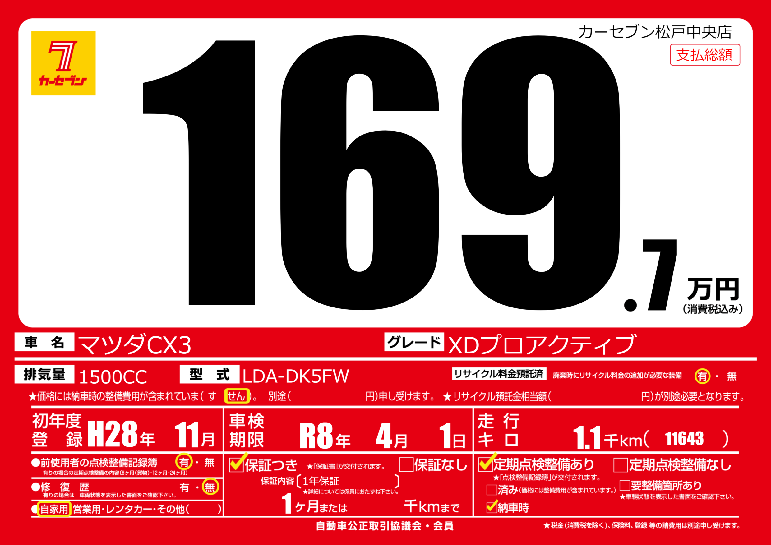 | 車名 | マツダCX3 | グレード ミッション 排気量 |