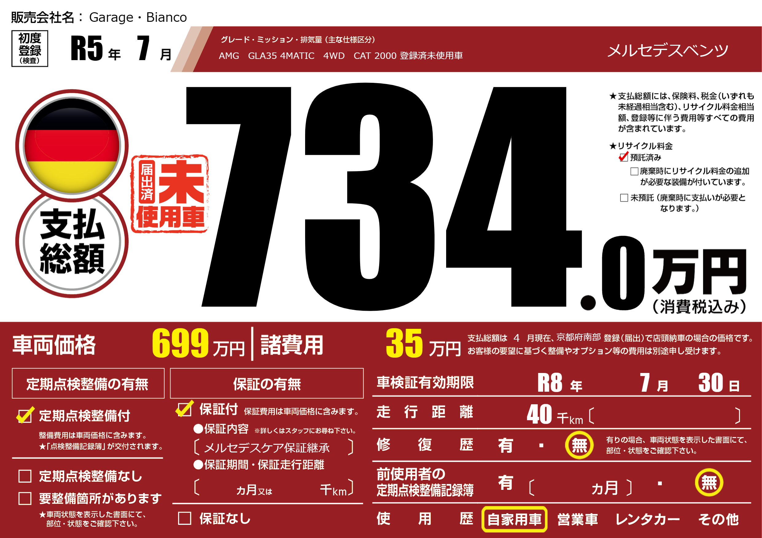 AMG GLA35 4MATIC 4WD CAT 2000 登録済未使用車 |