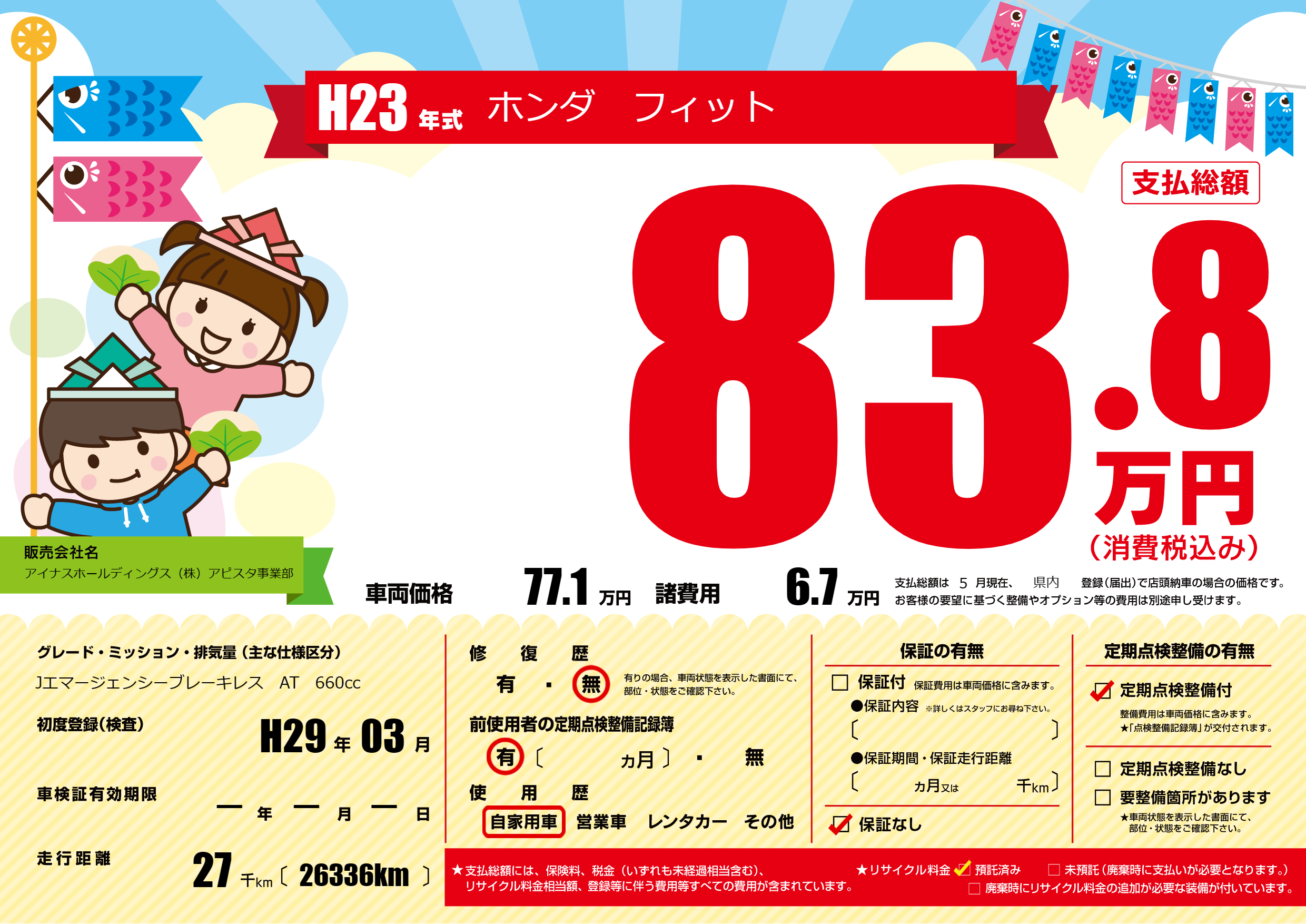 | 車名 | ホンダ フィット | グレード ミッション 排気量 |