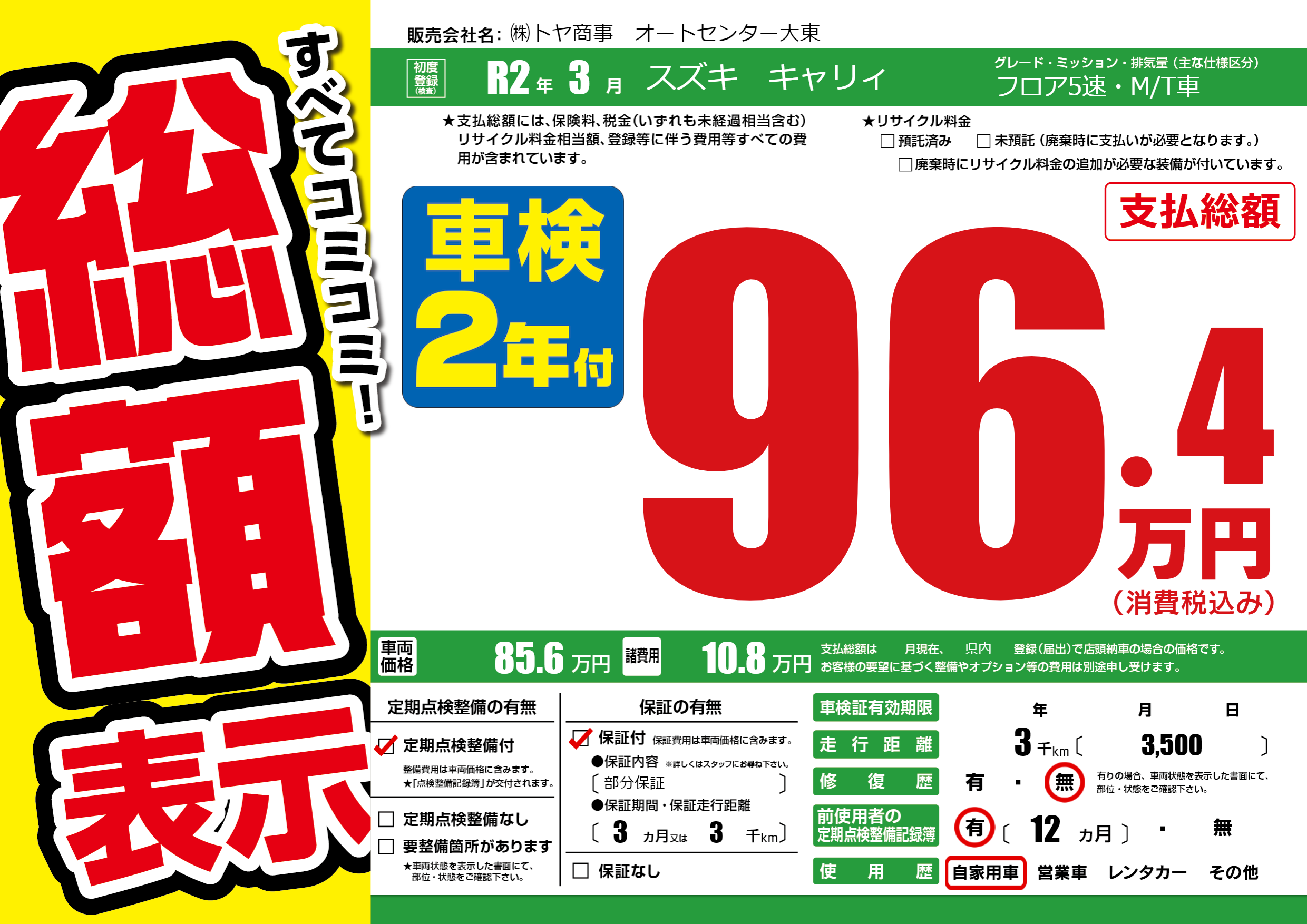 ㈱トヤ商事 新車市場雲南大東店の展示車