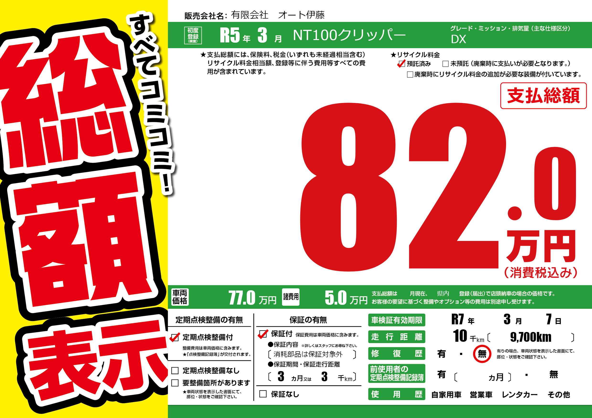 | 車名 | NT100クリッパー | グレード ミッション 排気量 |