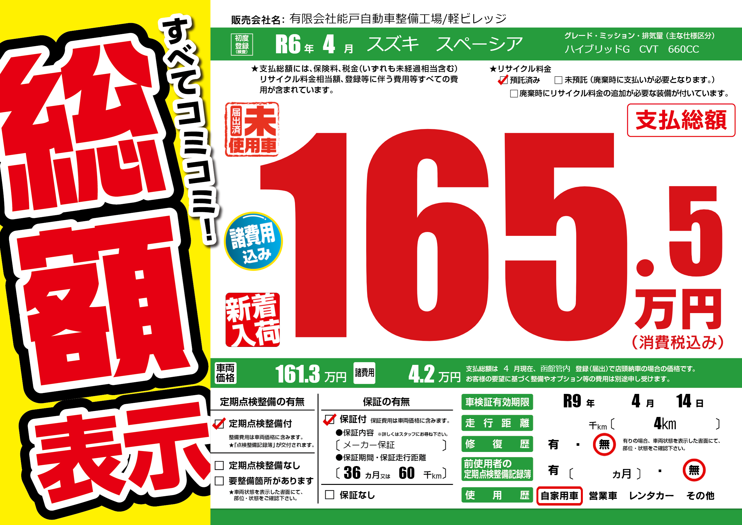 | 走行キロ | - | 初年度登録 | R6年4月 |