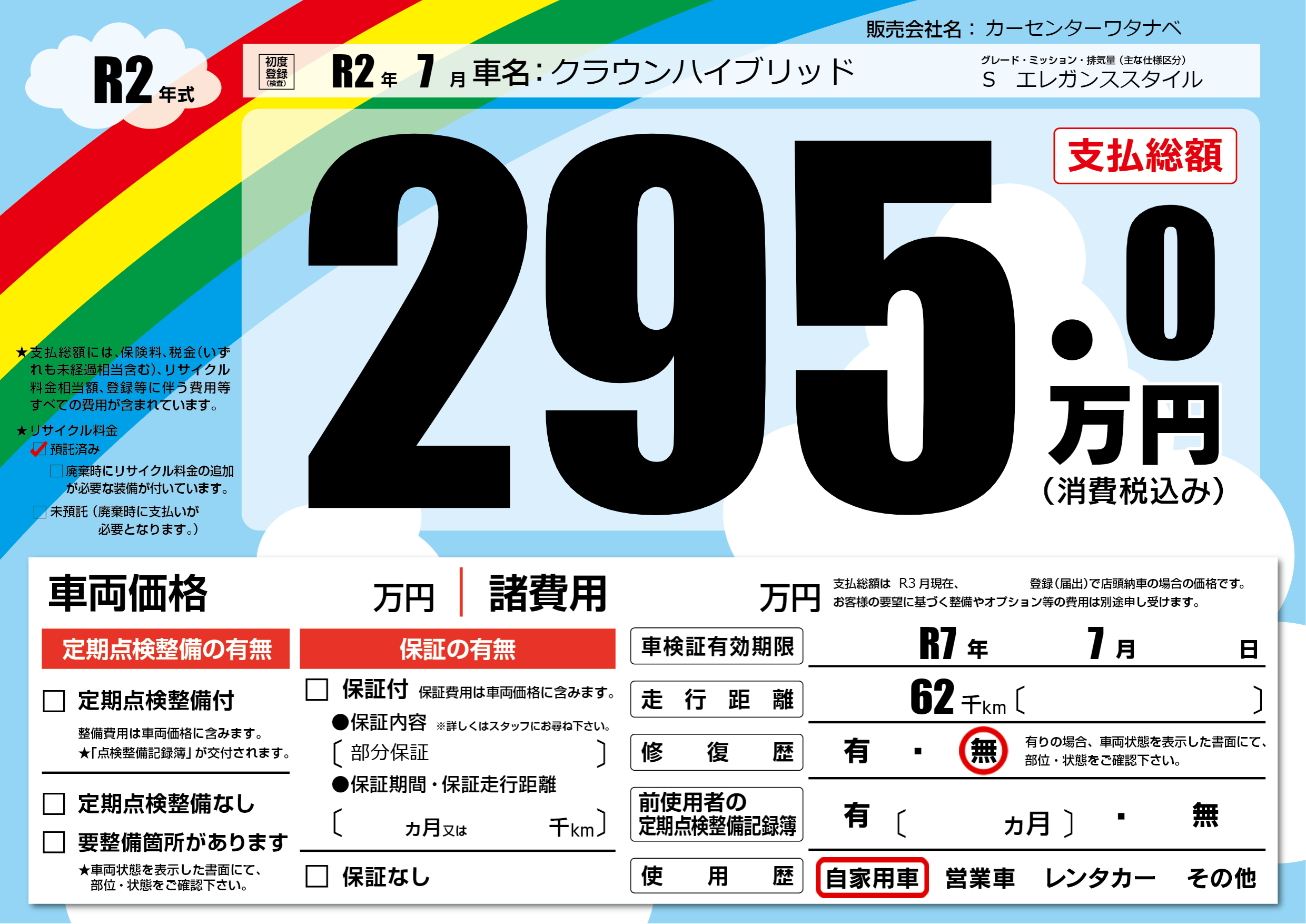 | 車検制限 | R7年 7月 - 日 | ||