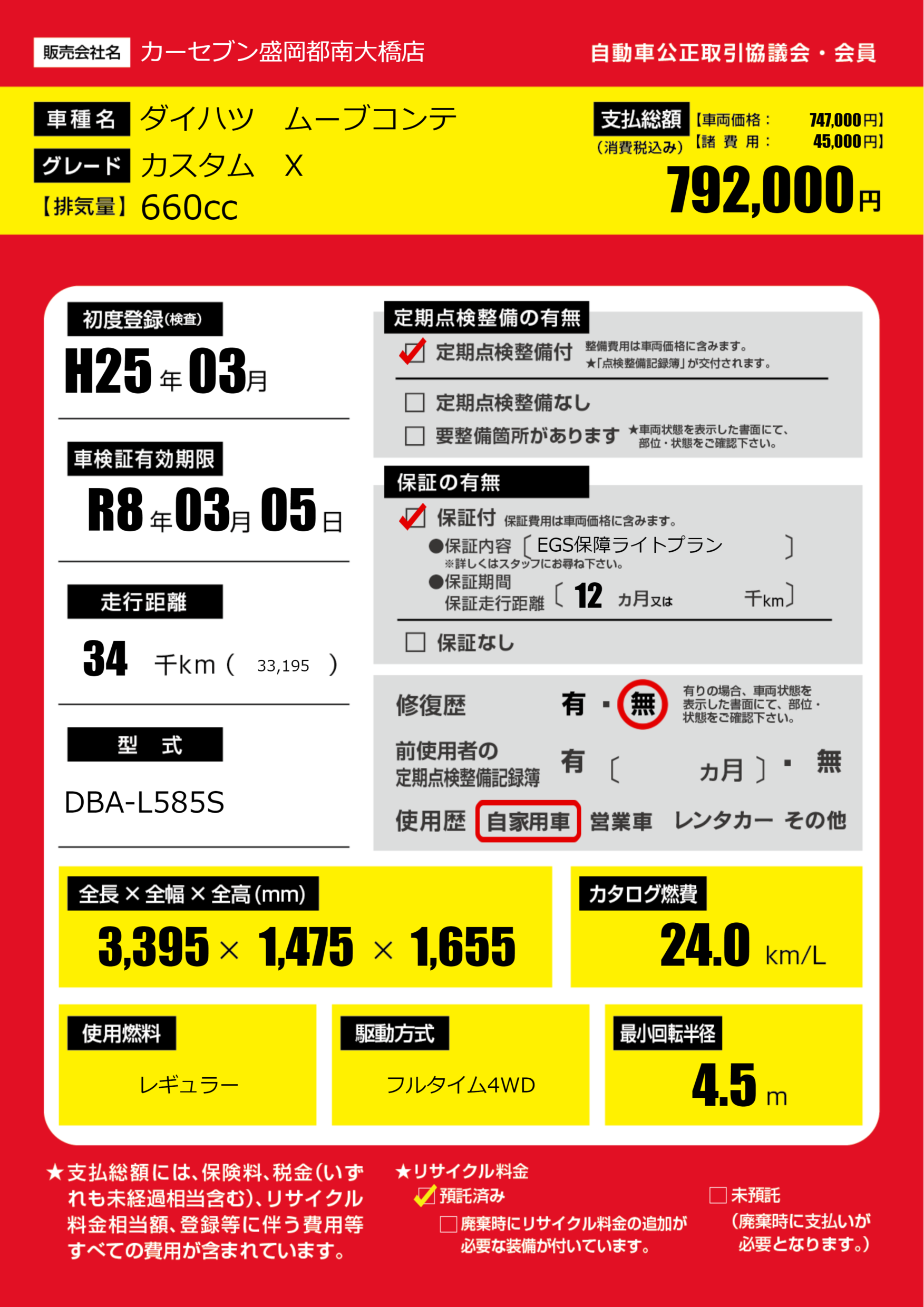 保証付き 保証内容(EGS保障ライトプラン) 12ヶ月または()千kmまで |
