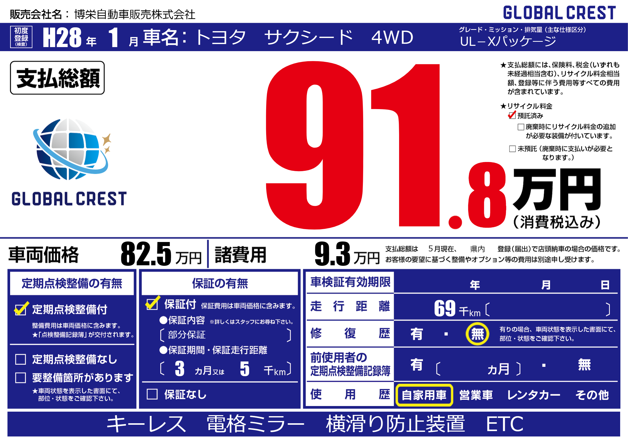 保証付き 保証内容(部分保証) 3ヶ月または(5)千kmまで |