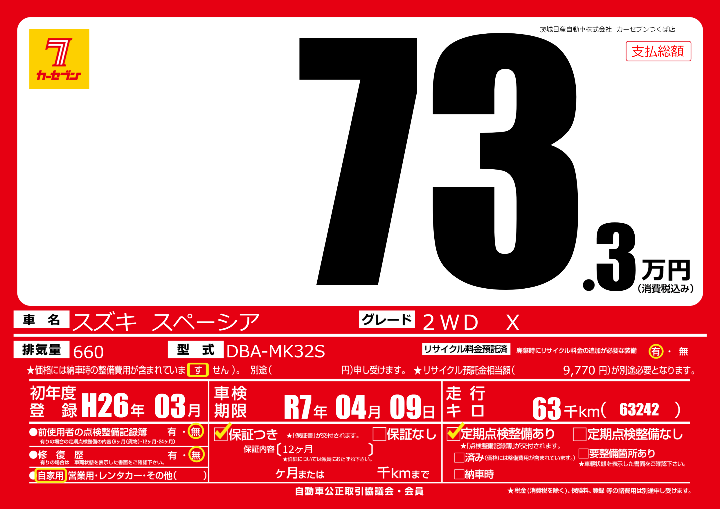 あり | 車検制限 | R7年04月09月 |