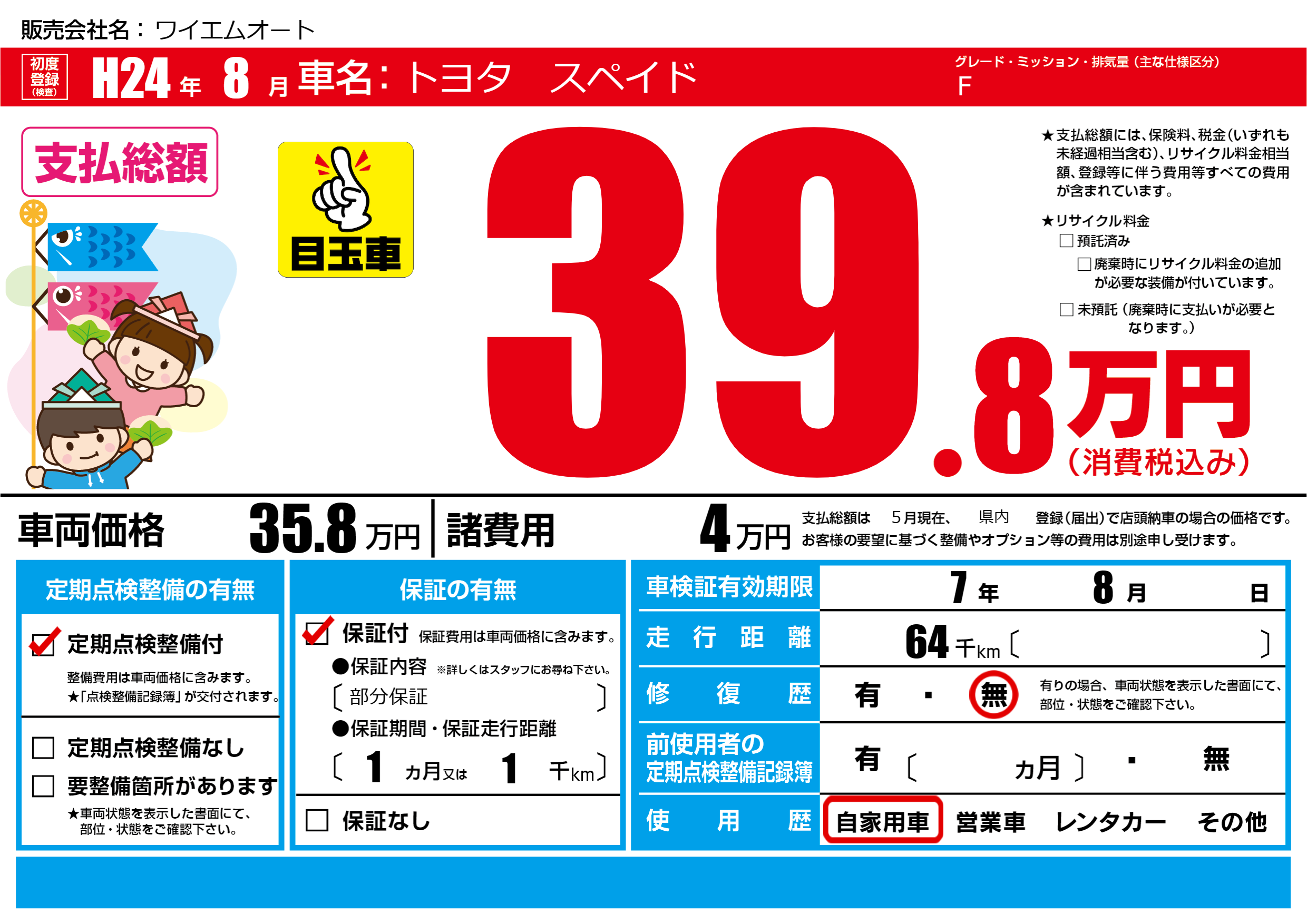 | 車検制限 | 7年 8月 - 日 | ||