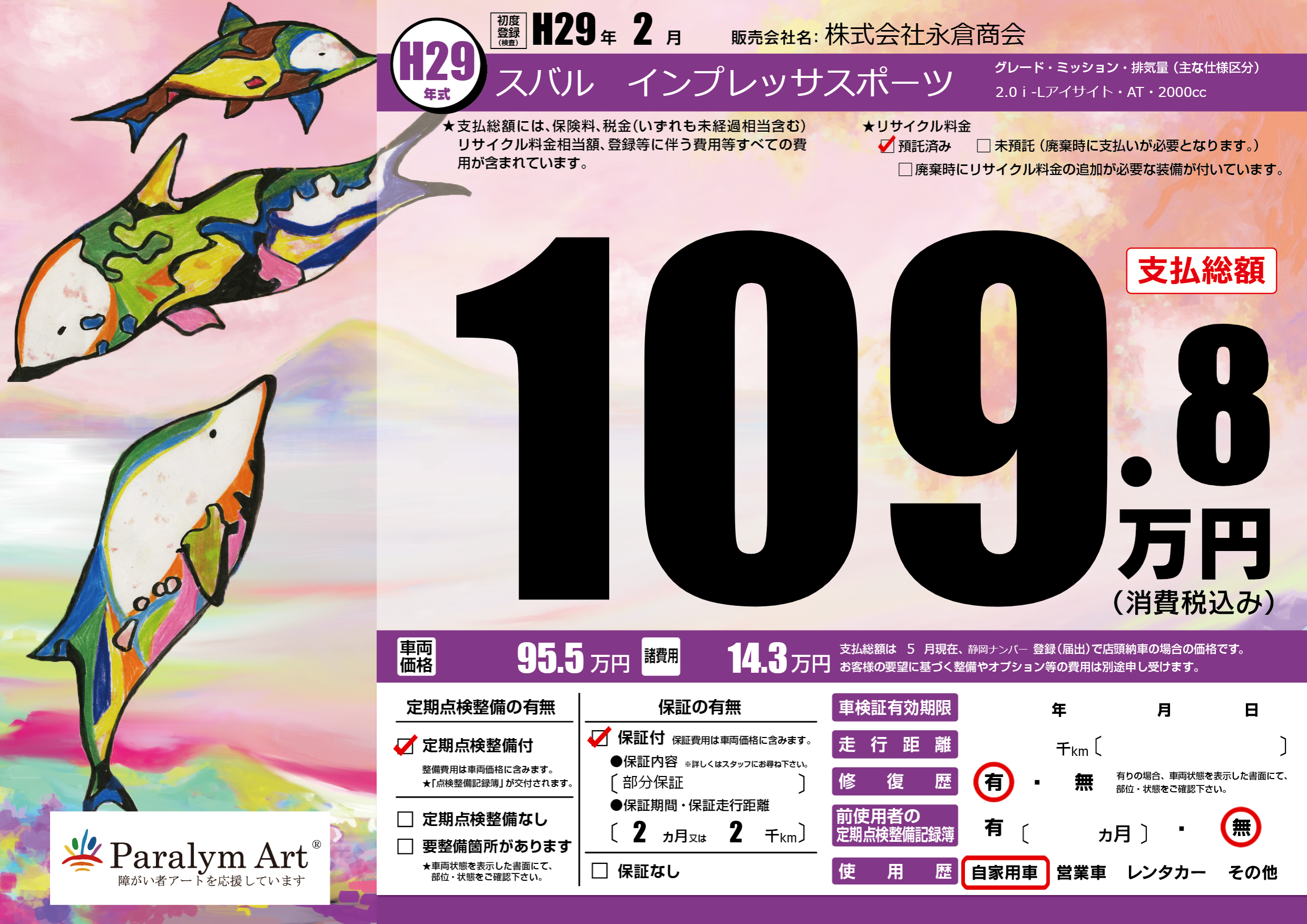 | 車名 | スバル インプレッサスポーツ | グレード ミッション 排気量 |