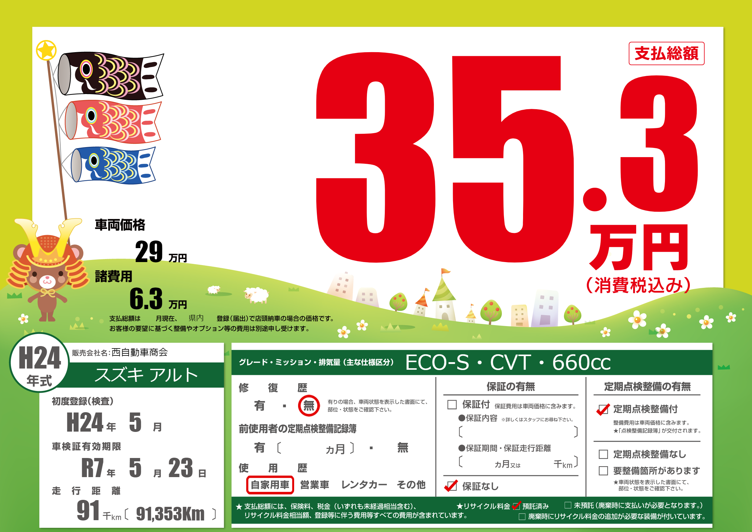 | 走行キロ | 9.1万km | 初年度登録 | H24年5月 |