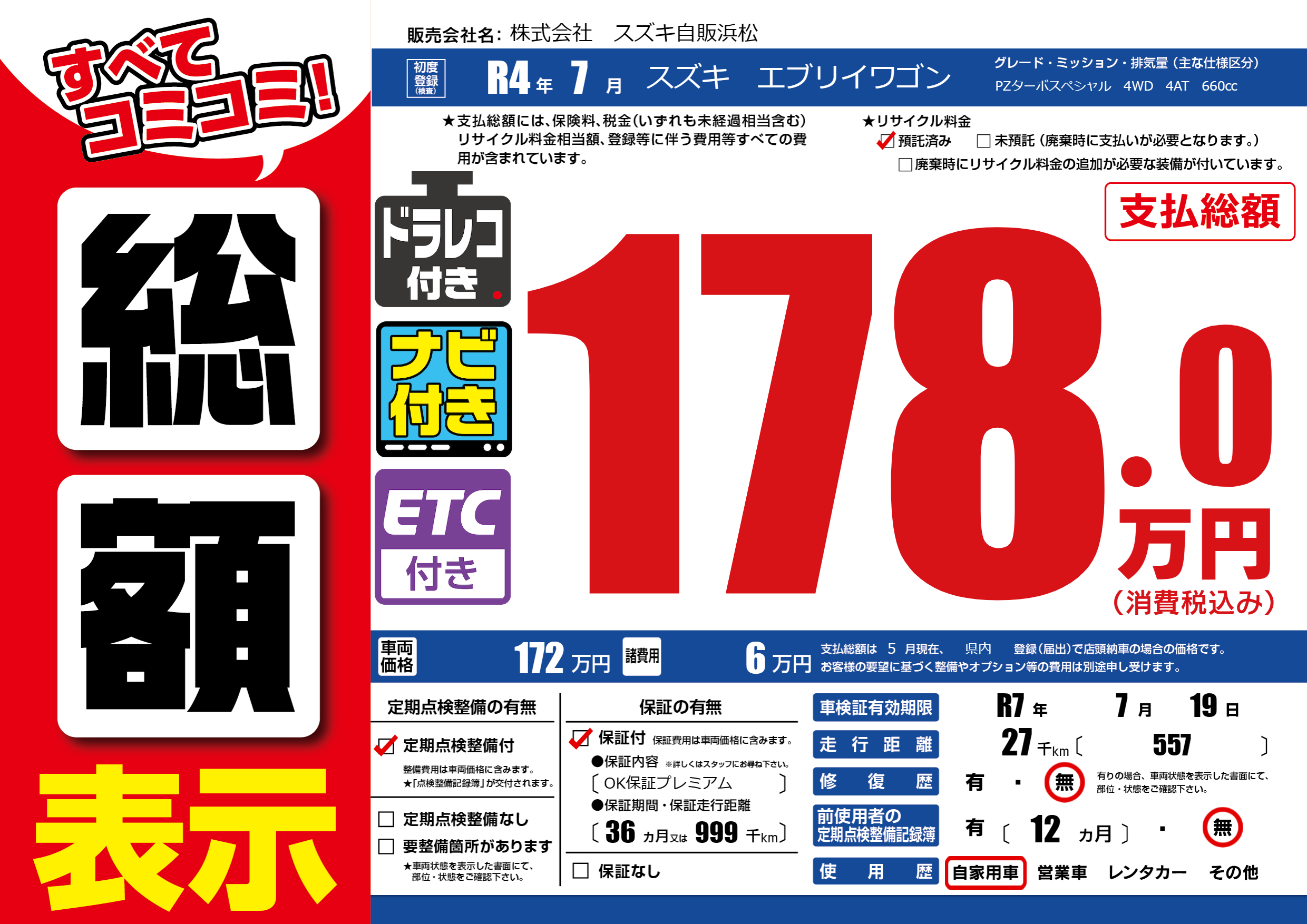 なし | 車検制限 | R7年7月19月 |