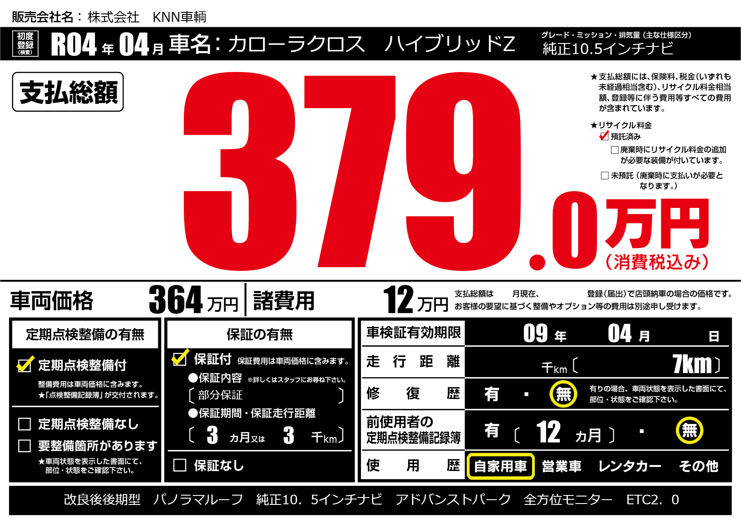| 走行キロ | - | 初年度登録 | R04年04月 |