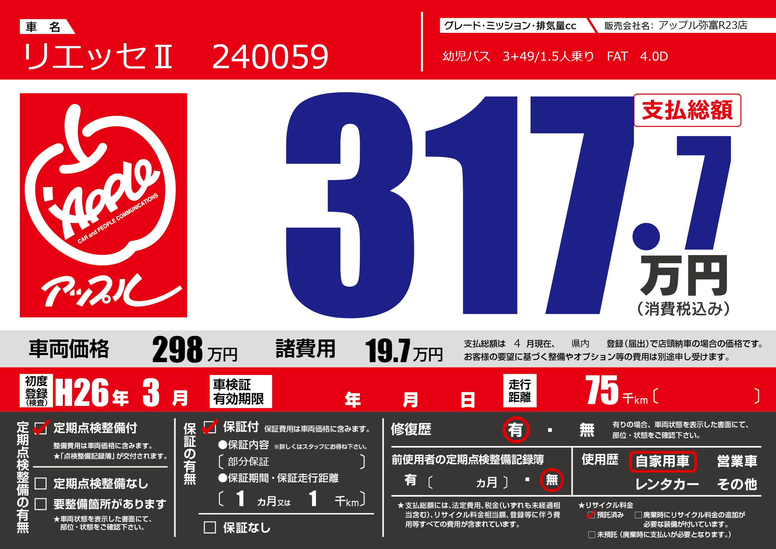 | 車名 | リエッセⅡ 240059 | グレード ミッション 排気量 |