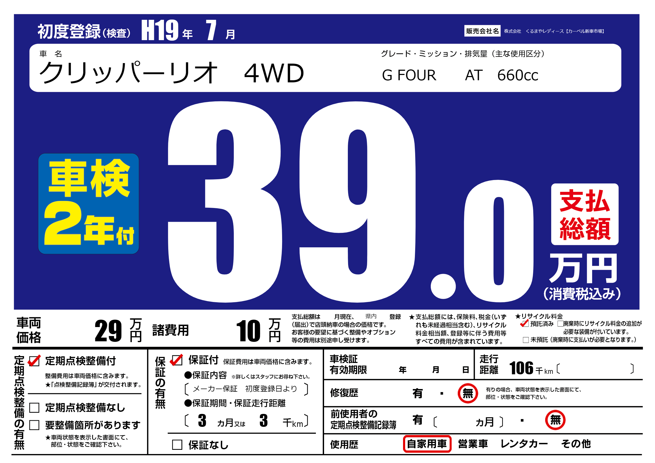 | 定期点検整備 | 定期点検整備あり | ||