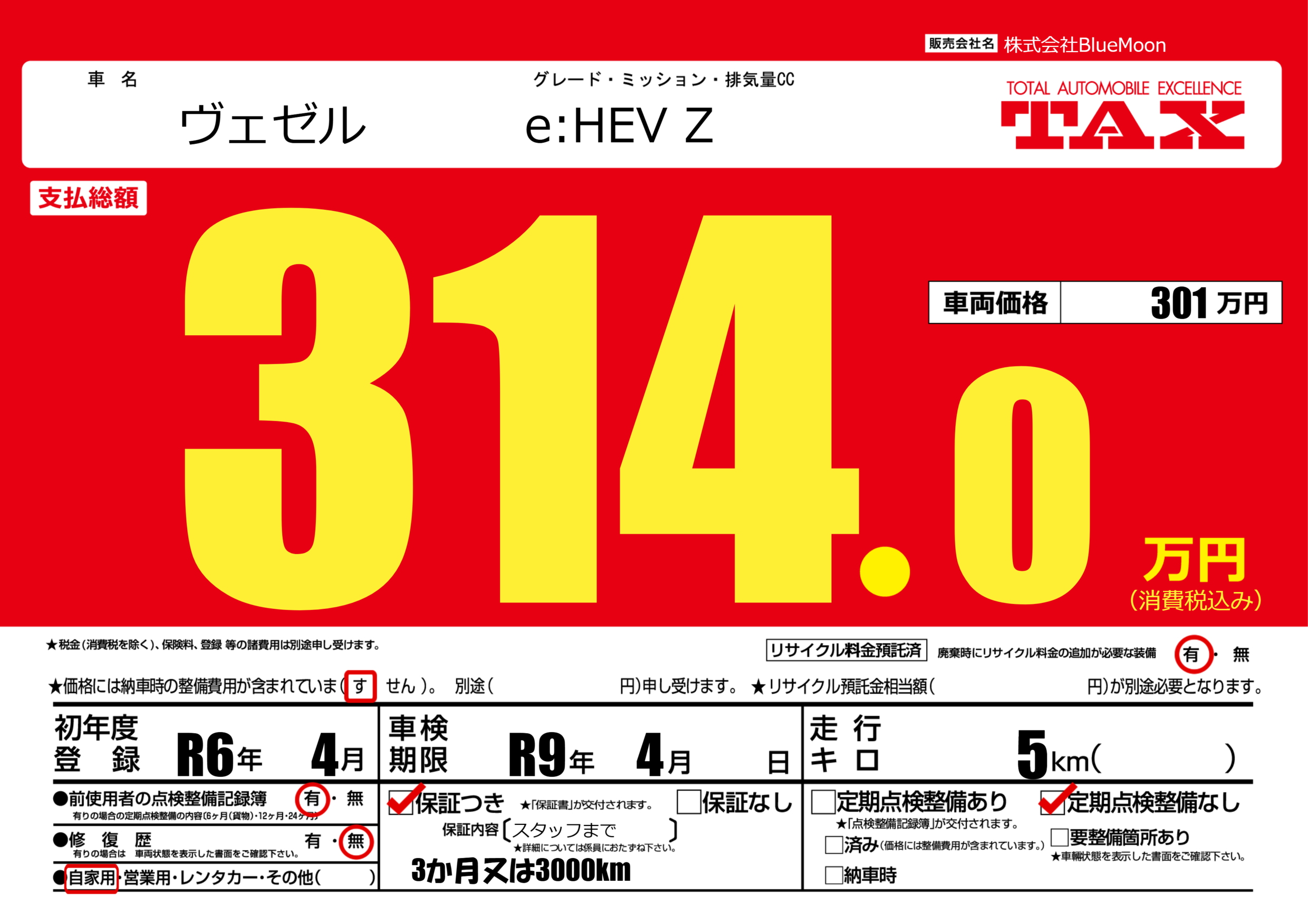 | 車名 | ヴェゼル | グレード ミッション 排気量 |