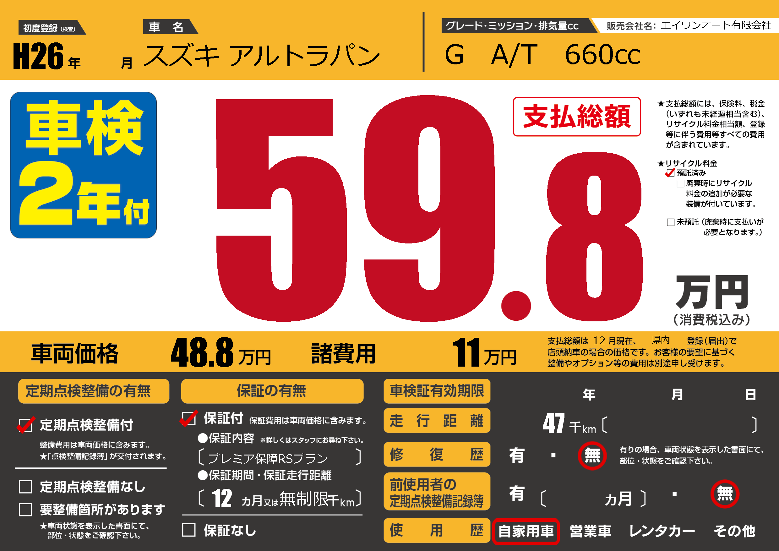 | 走行キロ | 4.7万km | ||