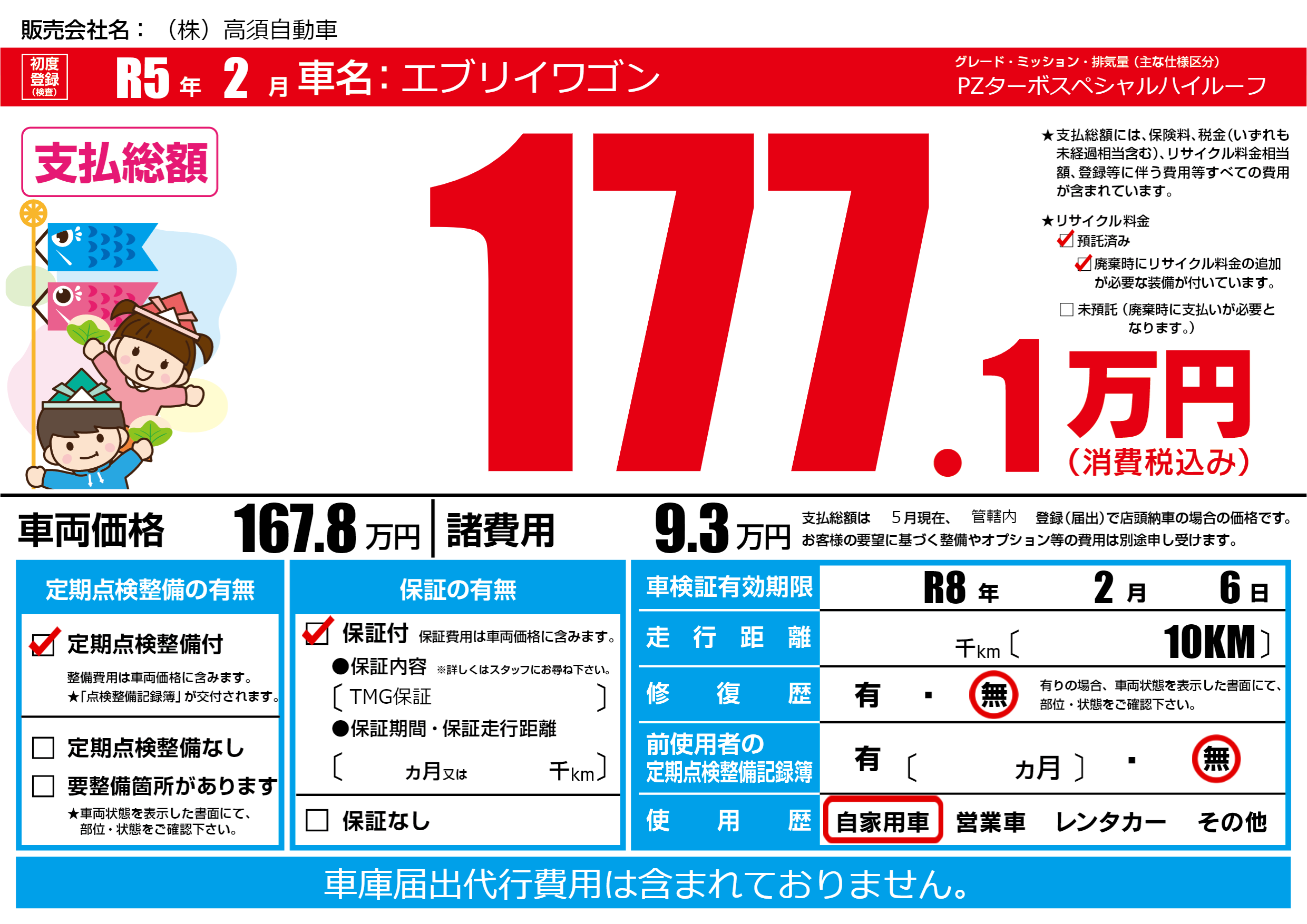 | 車名 | エブリイワゴン | グレード ミッション 排気量 |