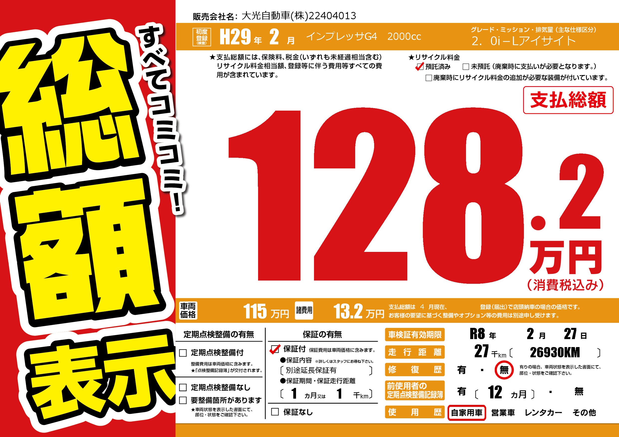 | 車検制限 | R8年 2月 27日 | ||
