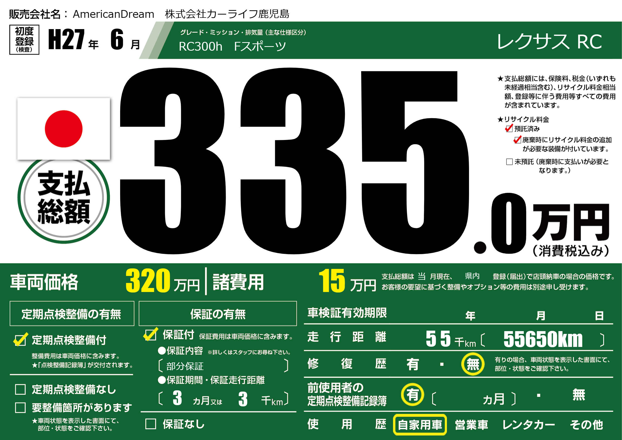 | 車検制限 | - 年 - 月 - 日 | ||