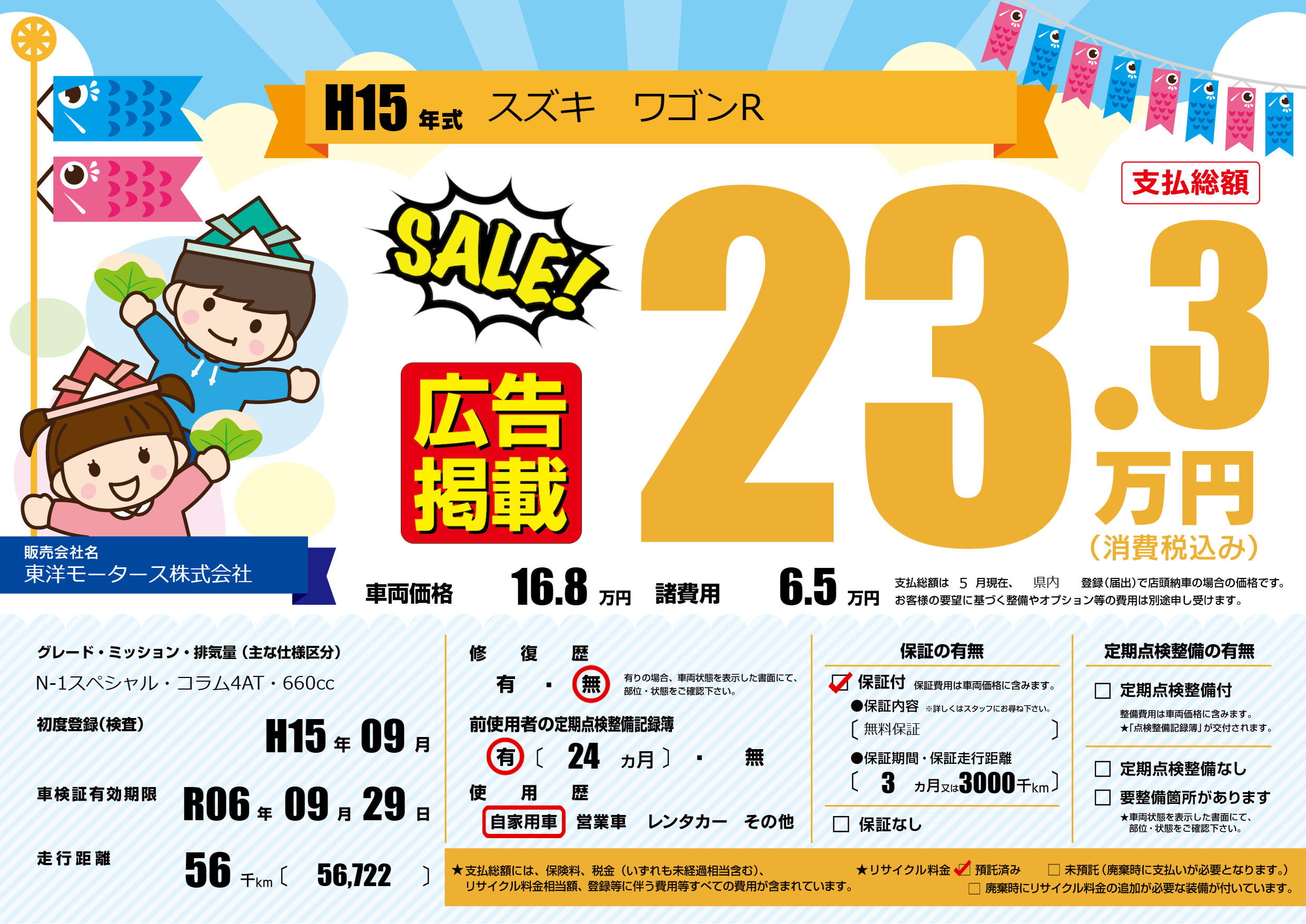 | 走行キロ | 5.6万km | 初年度登録 | H15年09月 |