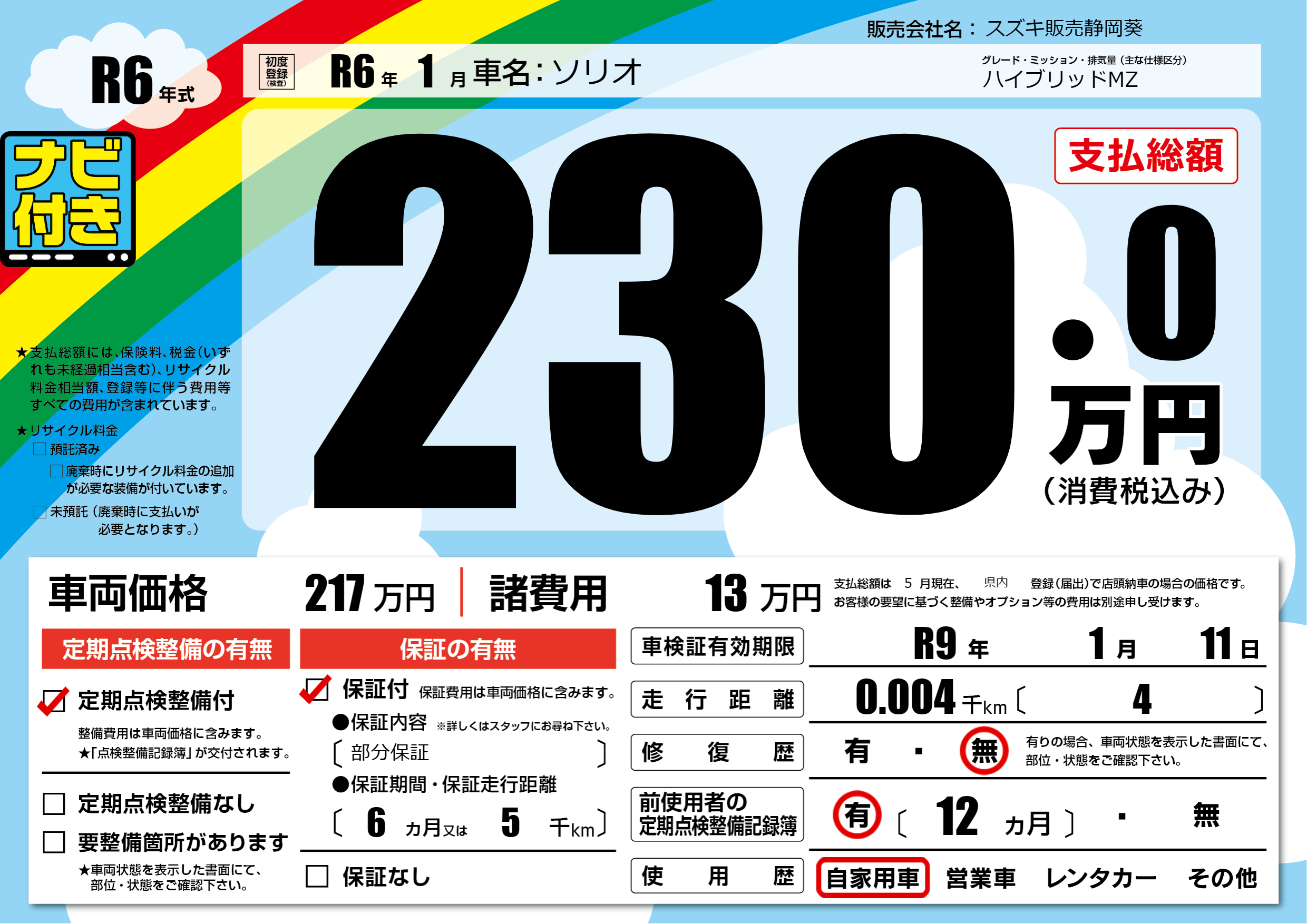 なし | 車検制限 | R9年1月11月 |
