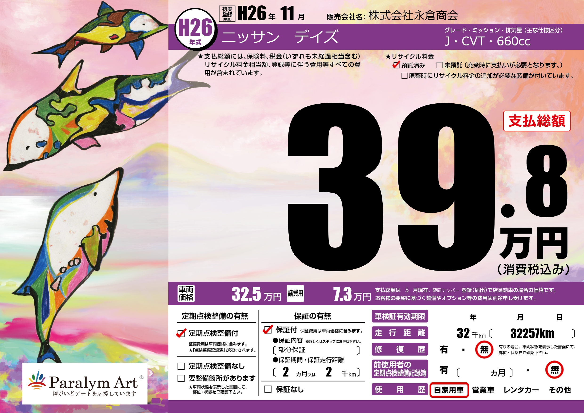 | 車名 | ニッサン デイズ | グレード ミッション 排気量 |