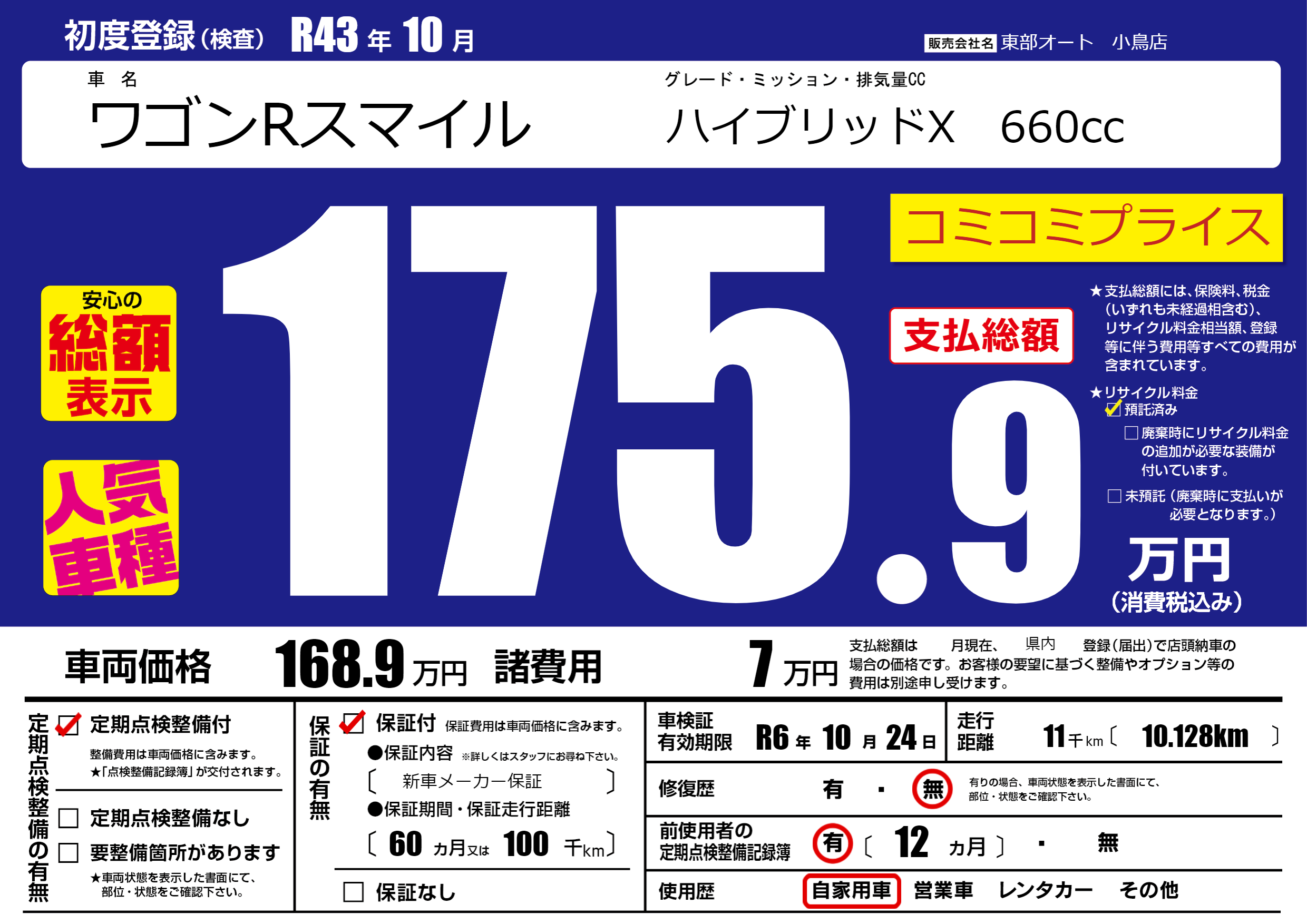 | 車名 | ワゴンRスマイル | グレード ミッション 排気量 |