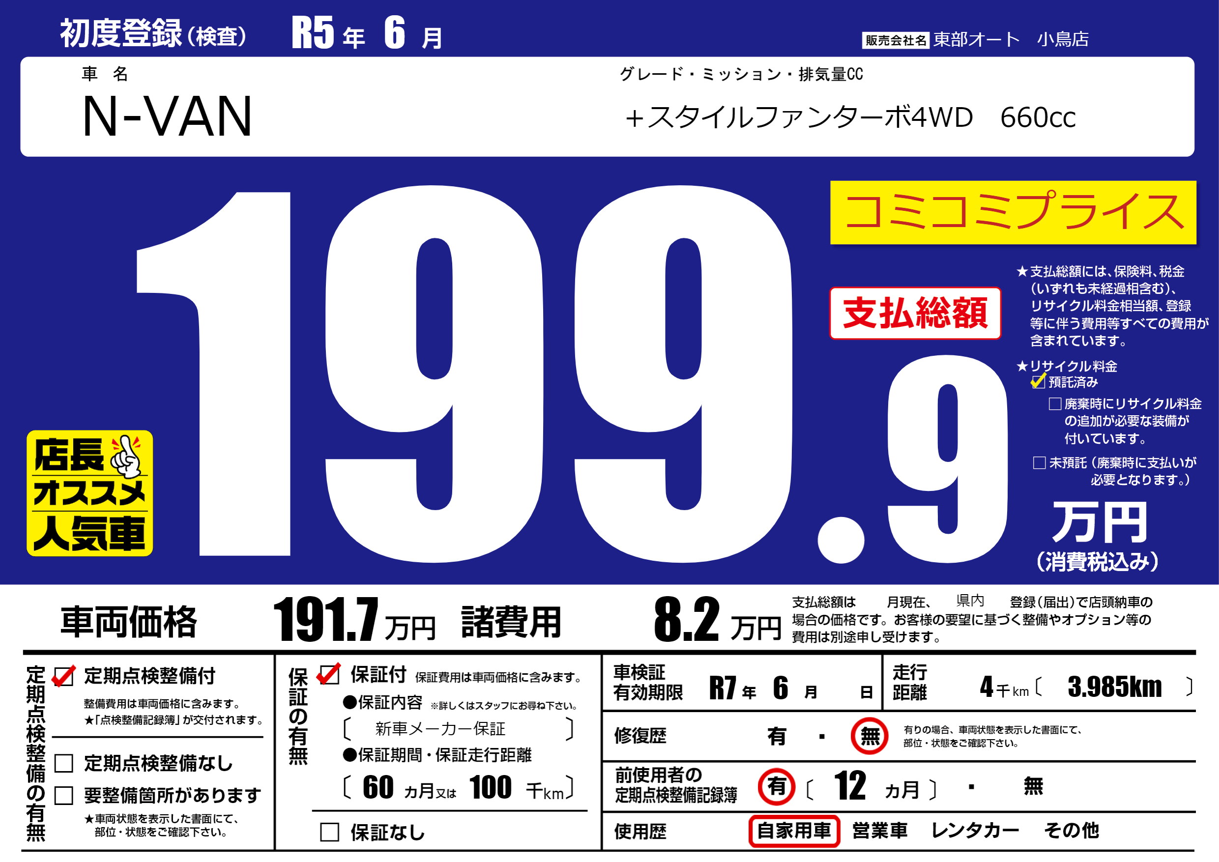 なし | 車検制限 | R7年6月---月 |
