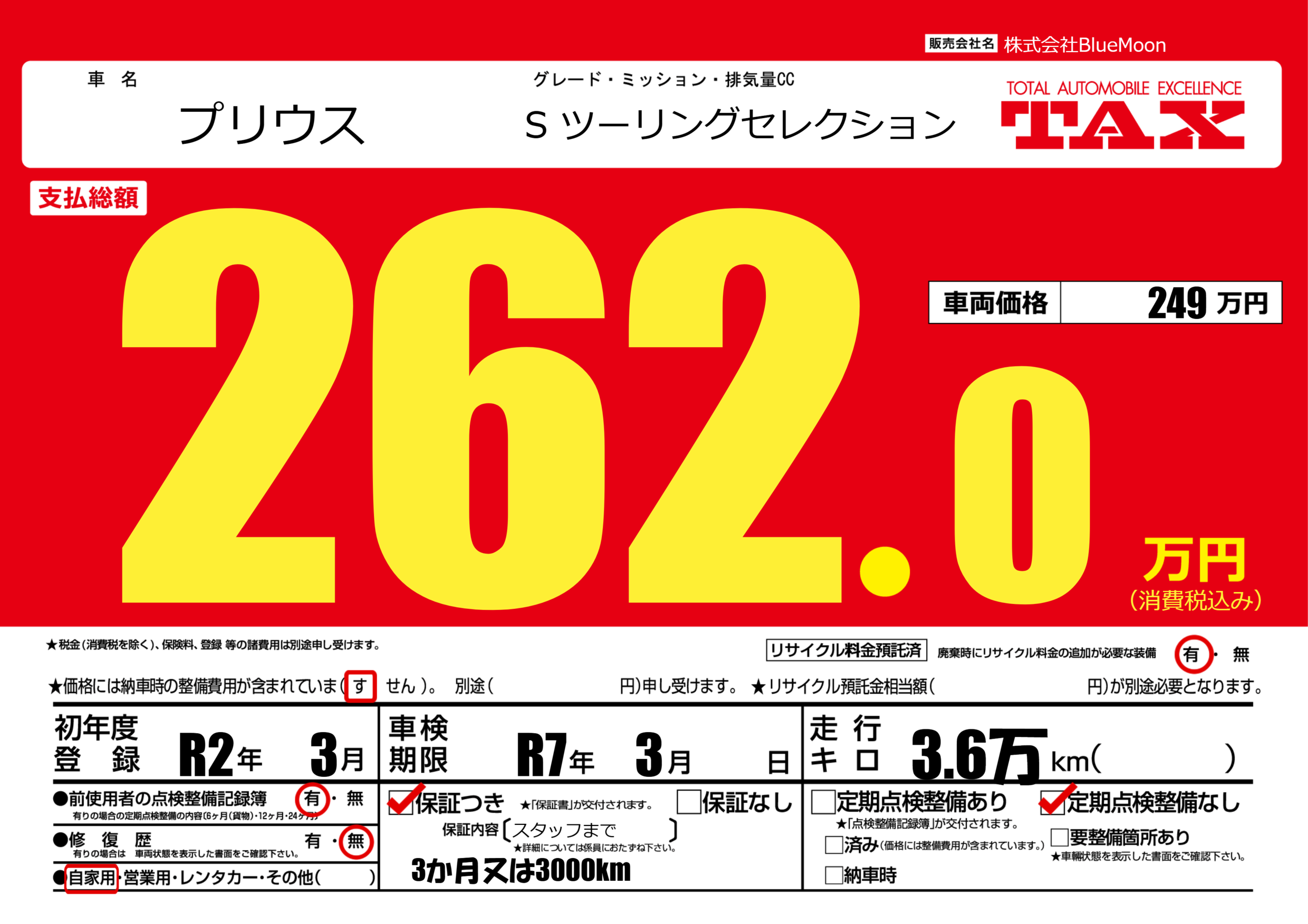 | 車名 | プリウス | グレード ミッション 排気量 |