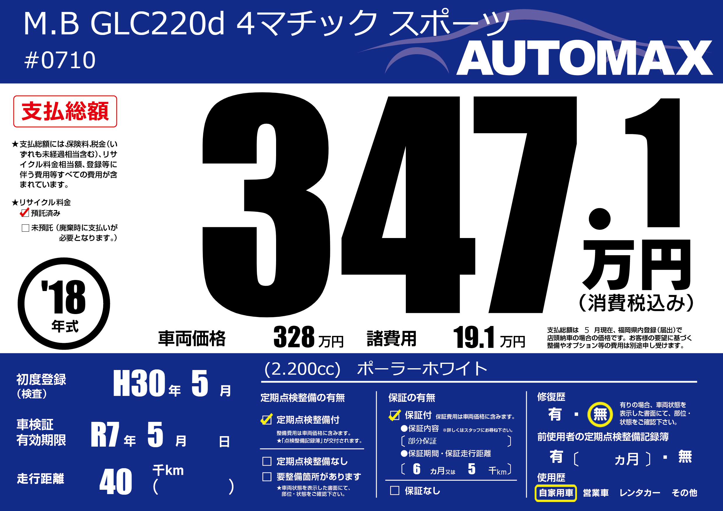 | 車検制限 | R7年 5月 - 日 | ||