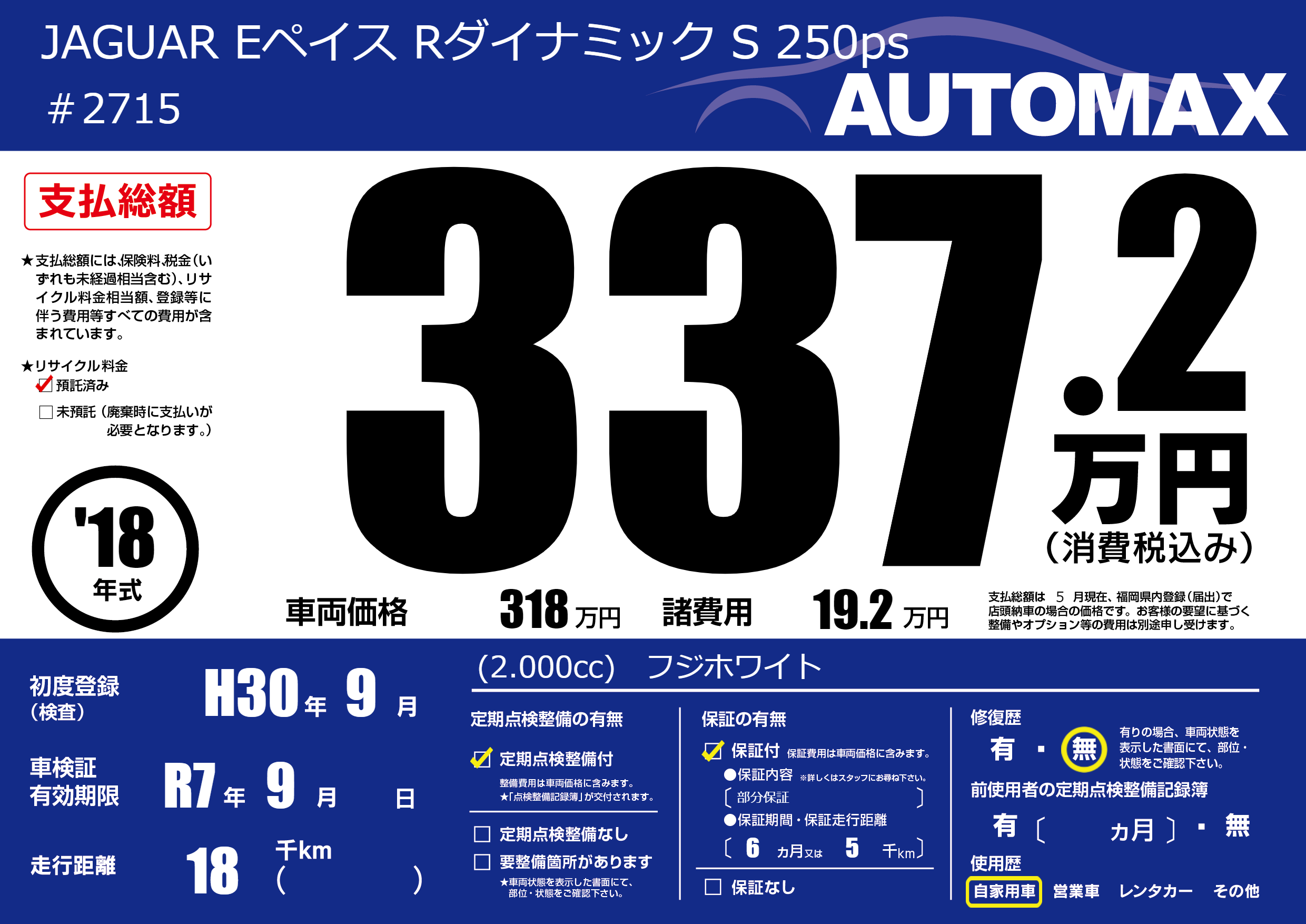 | 初年度登録 | H30年9月 | ||